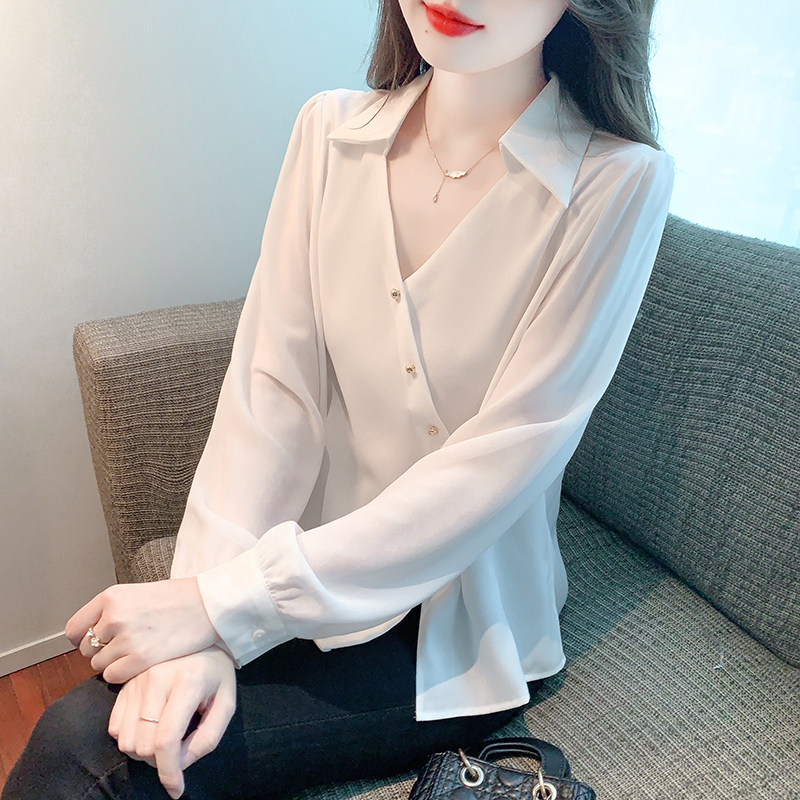 Осенняя рубашка, приталенный дизайнерский шифоновый корсет, в западном стиле, воротник поло, тренд сезона