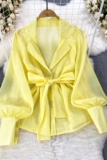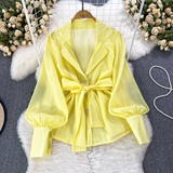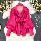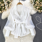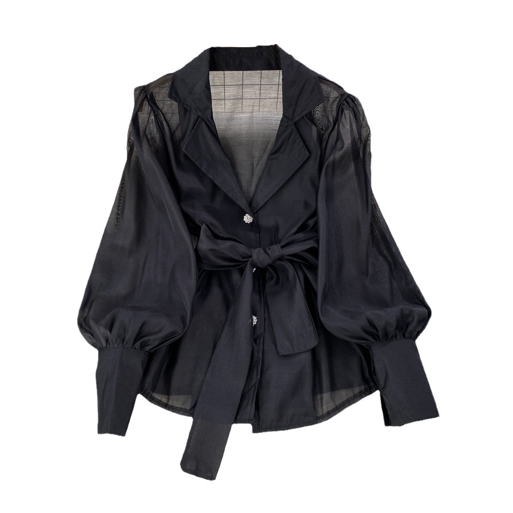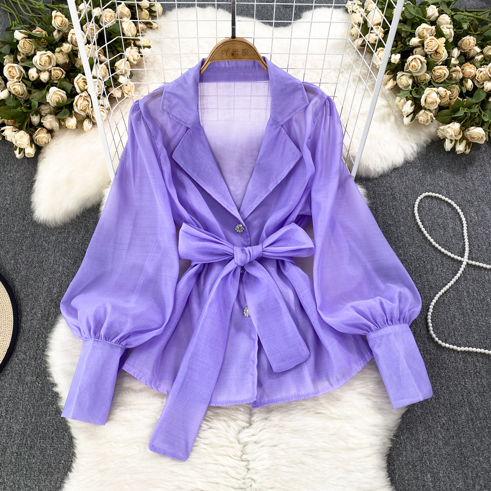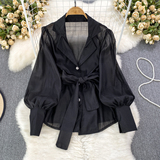 Осенний модный милый фонарь, шифоновый лонгслив, корсет с бантиком, костюм, в корейском стиле