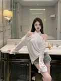 Осенний базовый приятный телу дизайнерский лонгслив, открытые плечи, тренд сезона