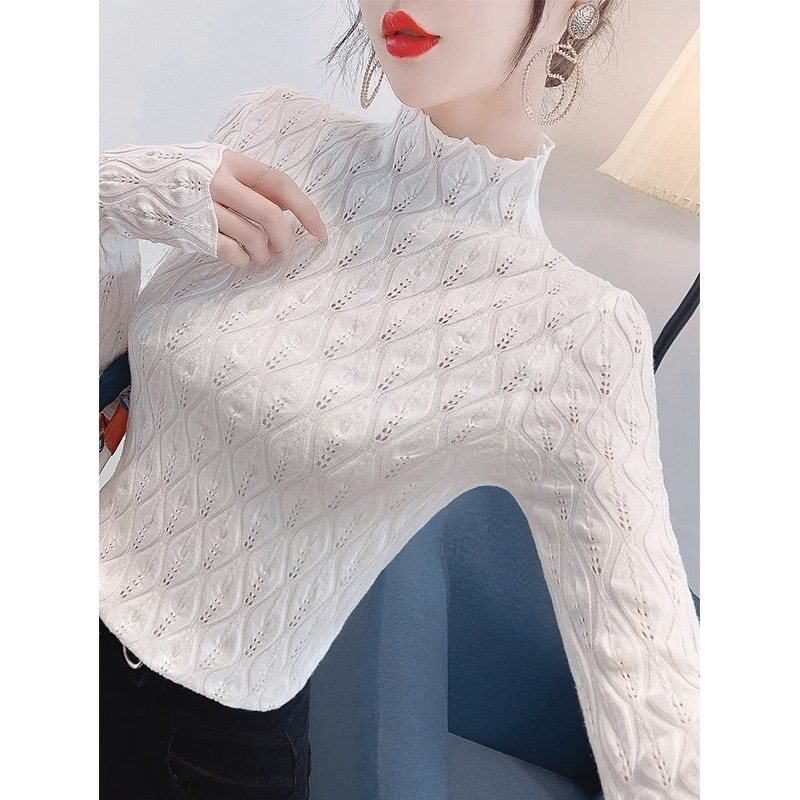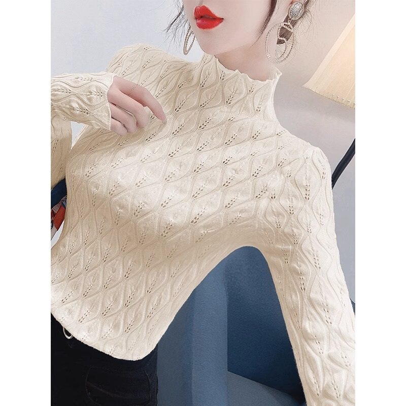Кружевной шелковый приятный телу осенний демисезонный свитер, высокий воротник, изысканный стиль