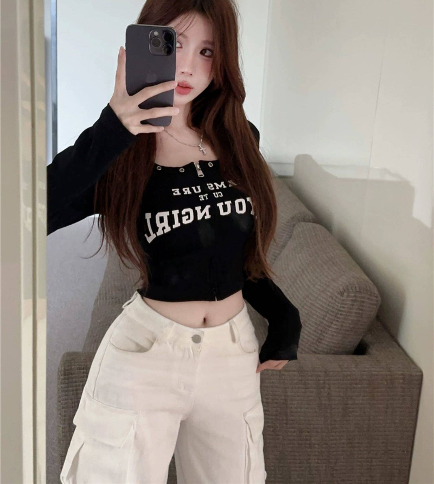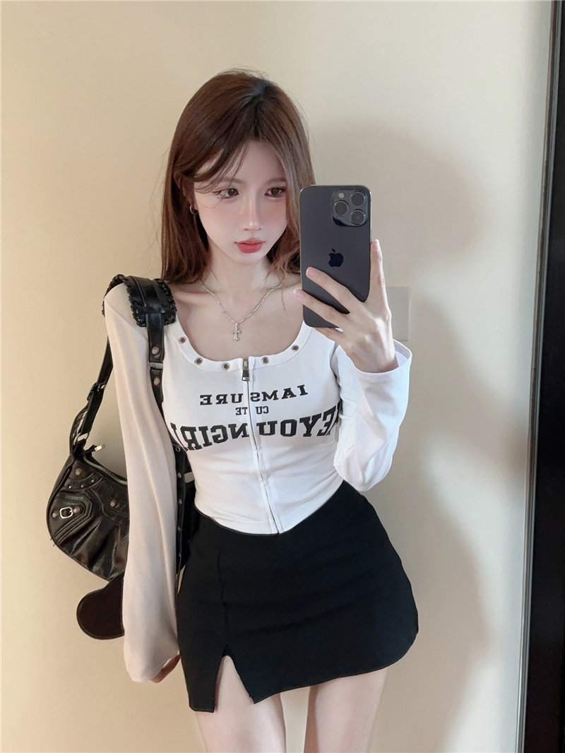 Осенний лонгслив с молнией, приятная телу дизайнерская футболка, в американском стиле, тренд сезона