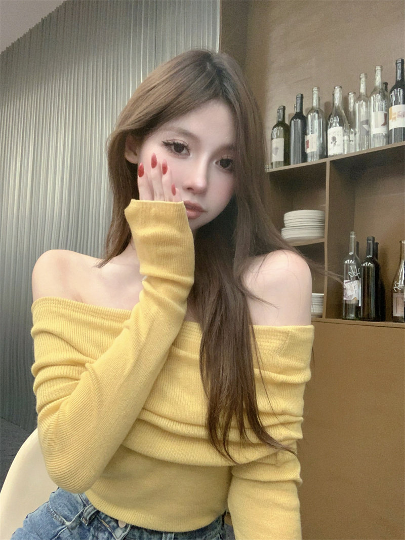 Сексуальный демисезонный трикотажный лонгслив, приятный телу свитер, открытые плечи
