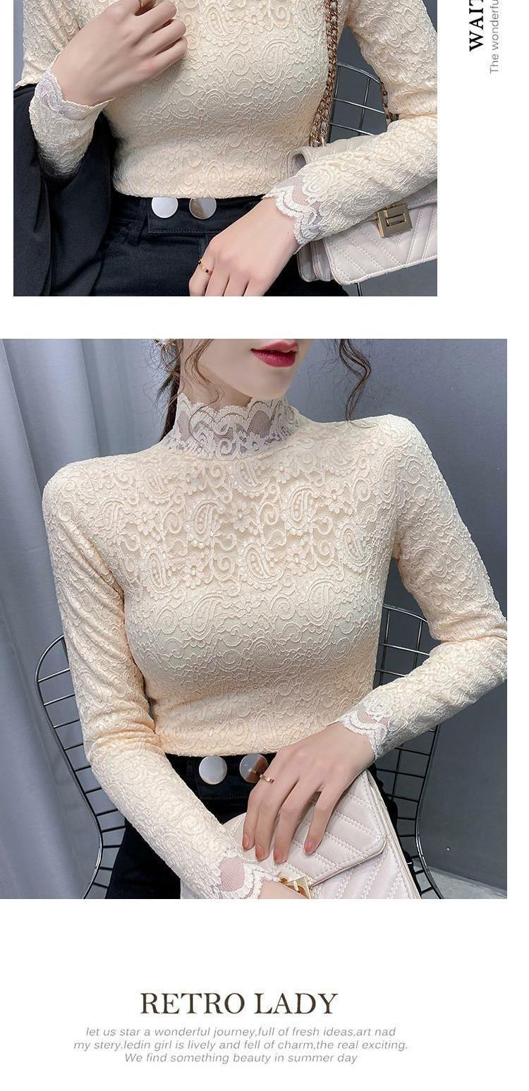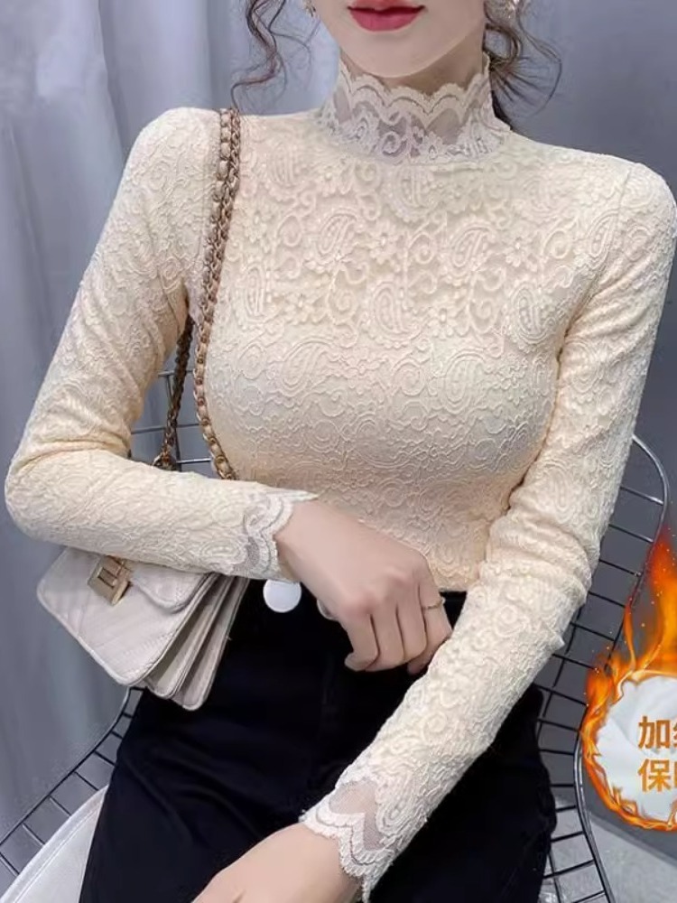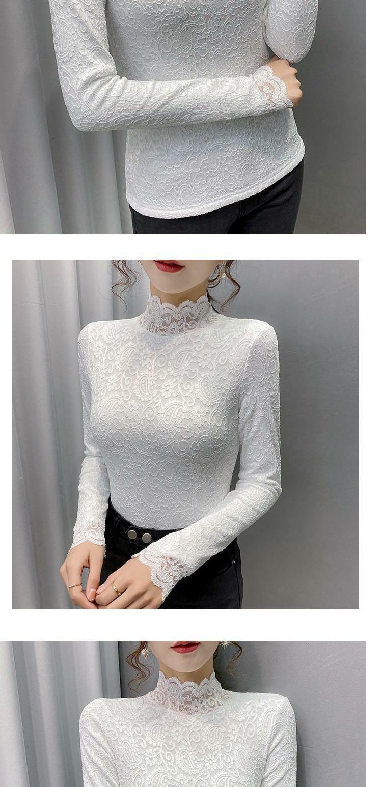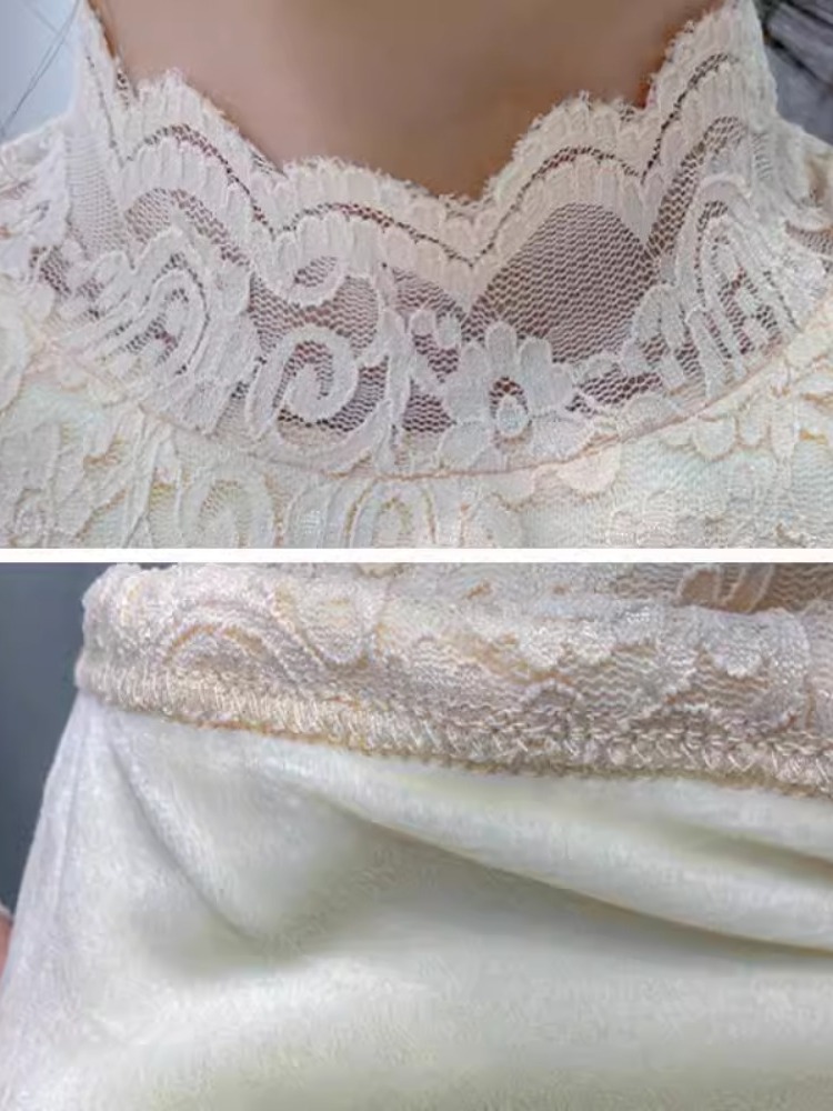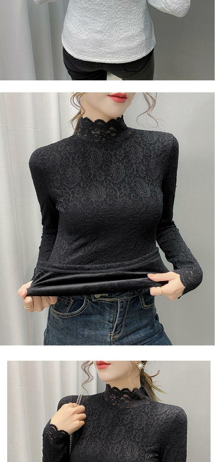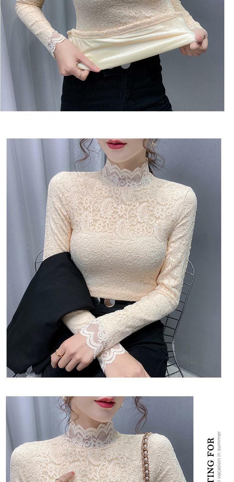 Новая годоватая рубашка для весенней новой модной плюшевой бархатной толстой кружевной рубашки для женских полей наполовину шеи для зимы, чтобы выглядеть стройно