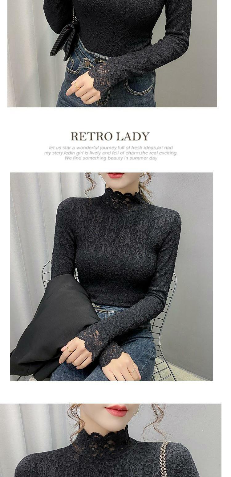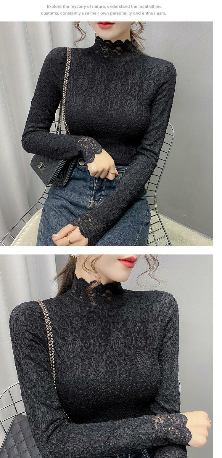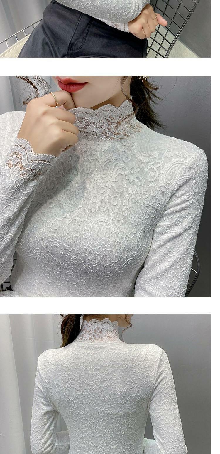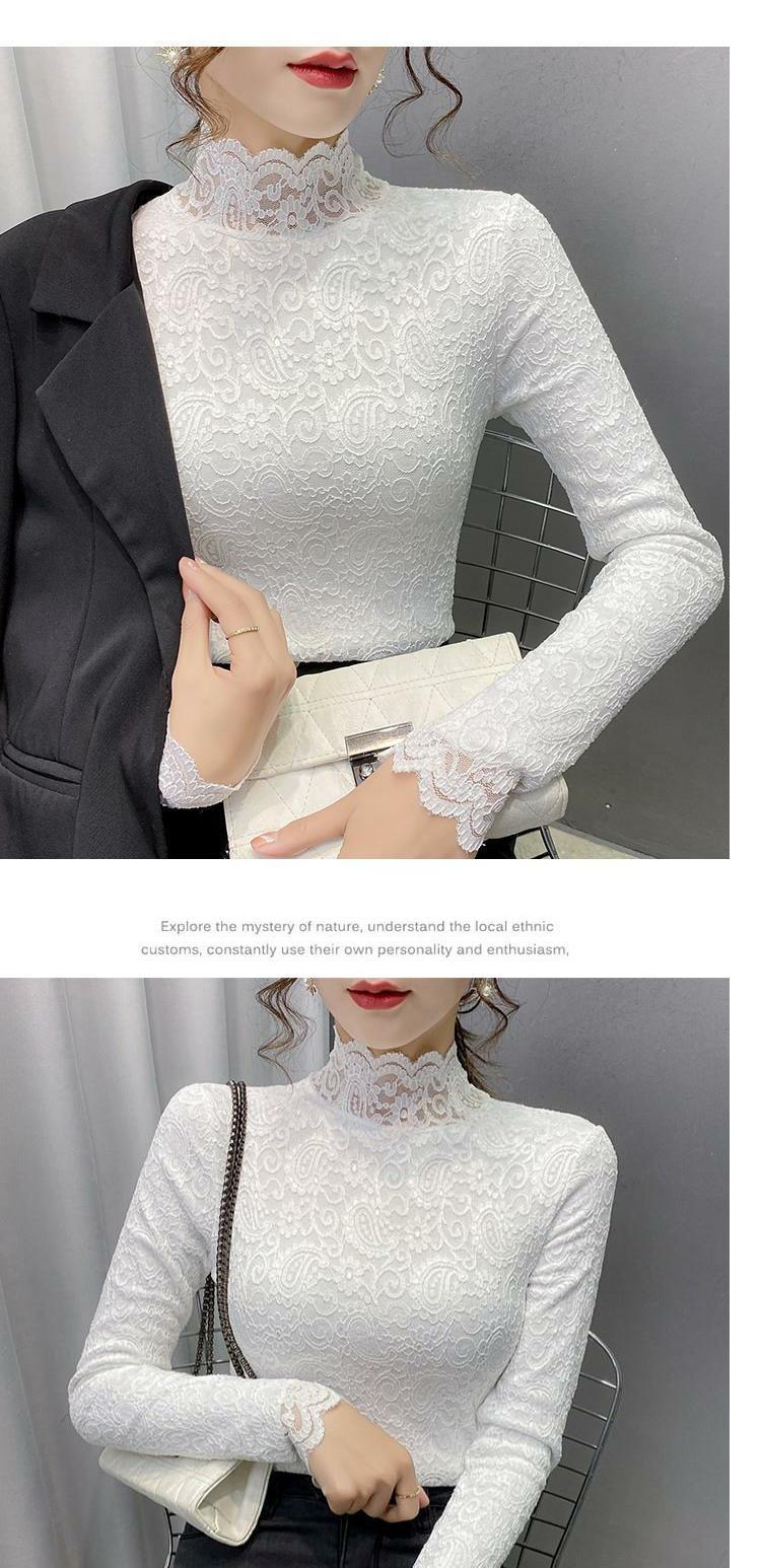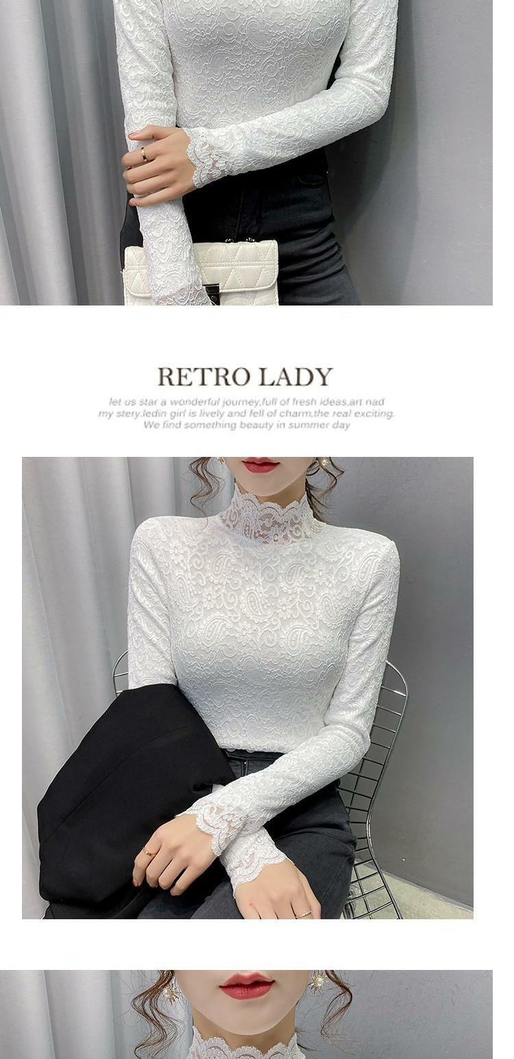 Новая годоватая рубашка для весенней новой модной плюшевой бархатной толстой кружевной рубашки для женских полей наполовину шеи для зимы, чтобы выглядеть стройно