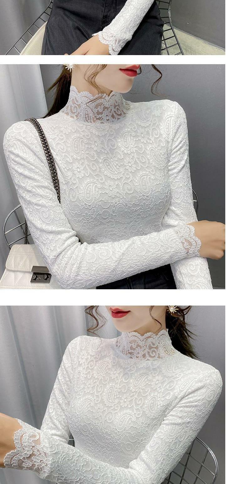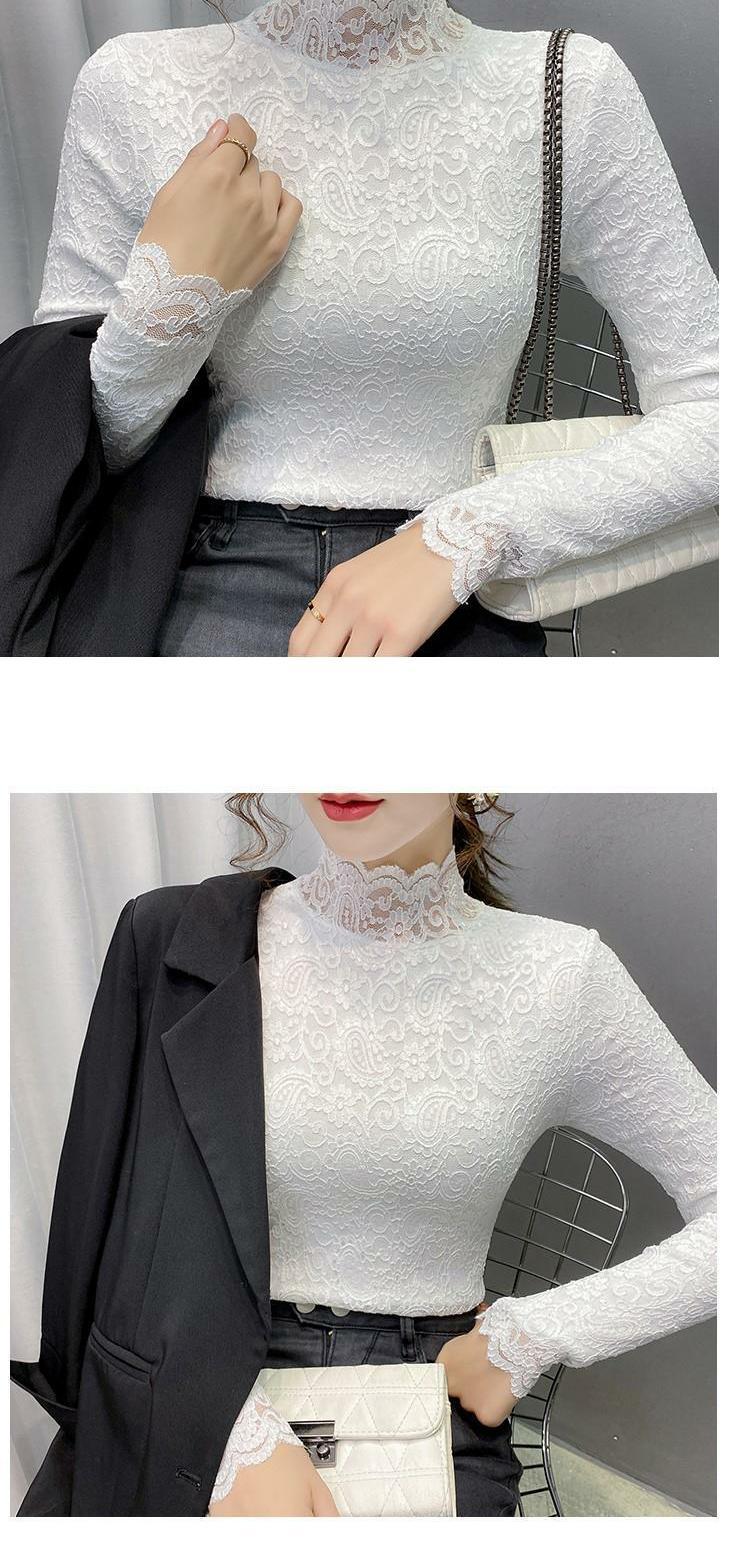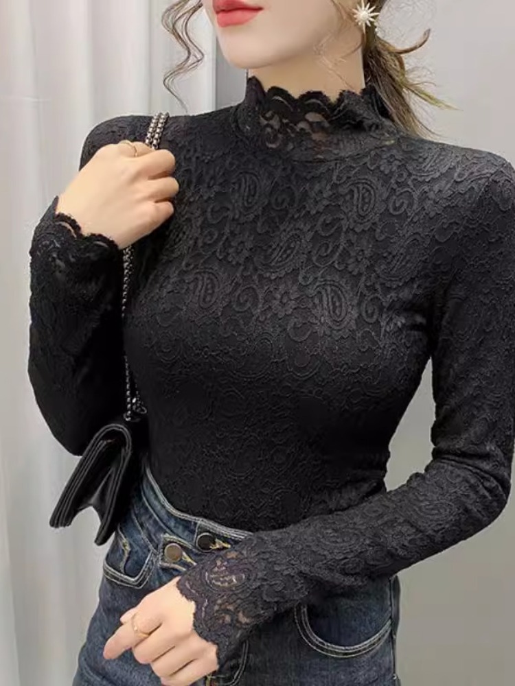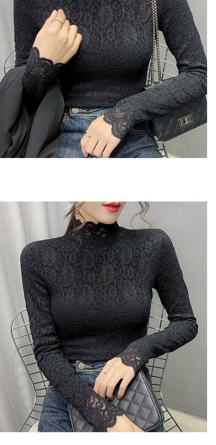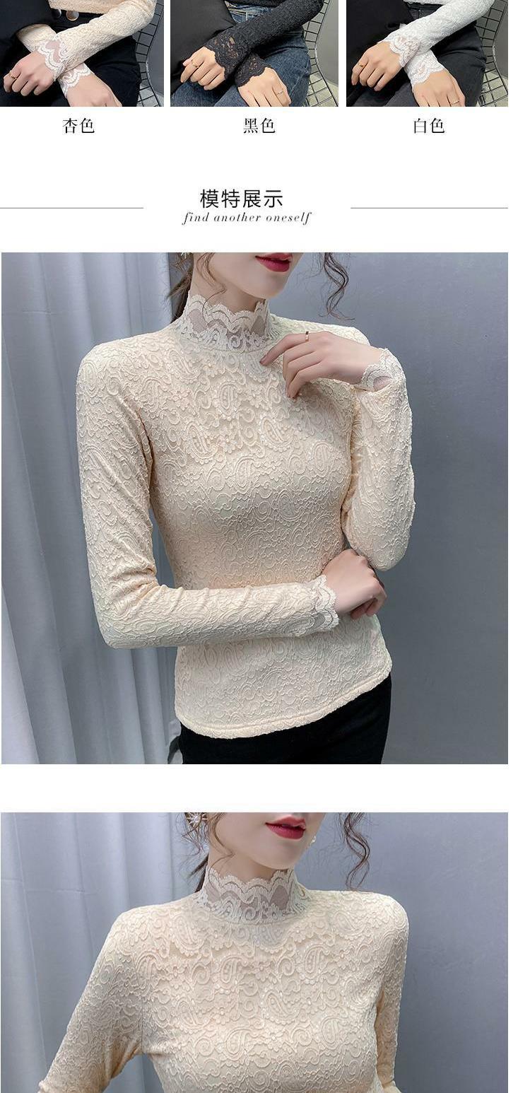 Новая годоватая рубашка для весенней новой модной плюшевой бархатной толстой кружевной рубашки для женских полей наполовину шеи для зимы, чтобы выглядеть стройно
