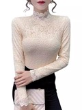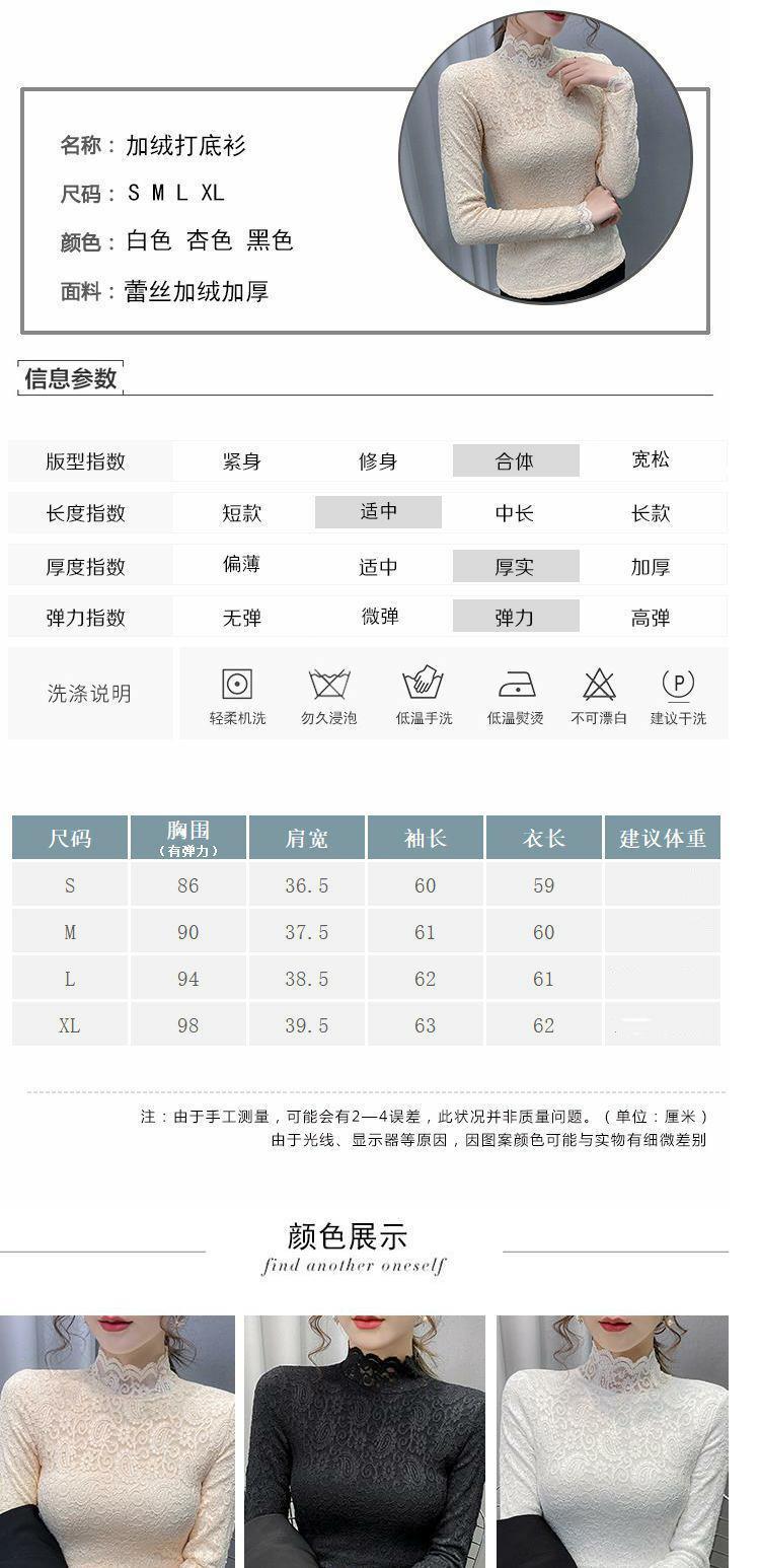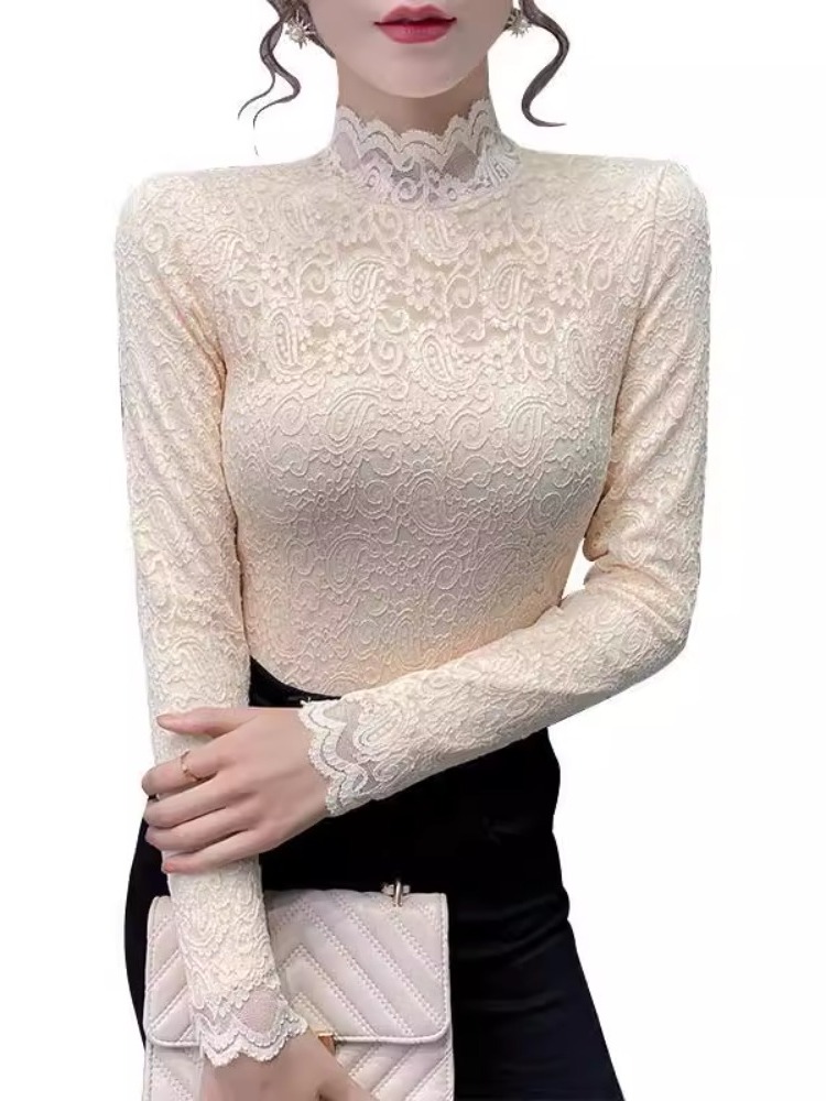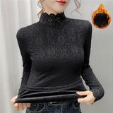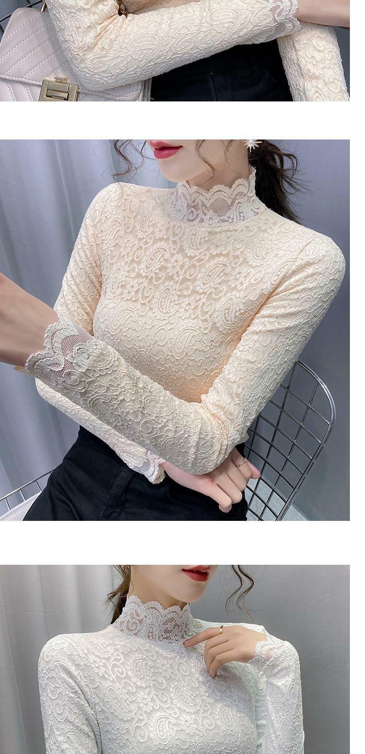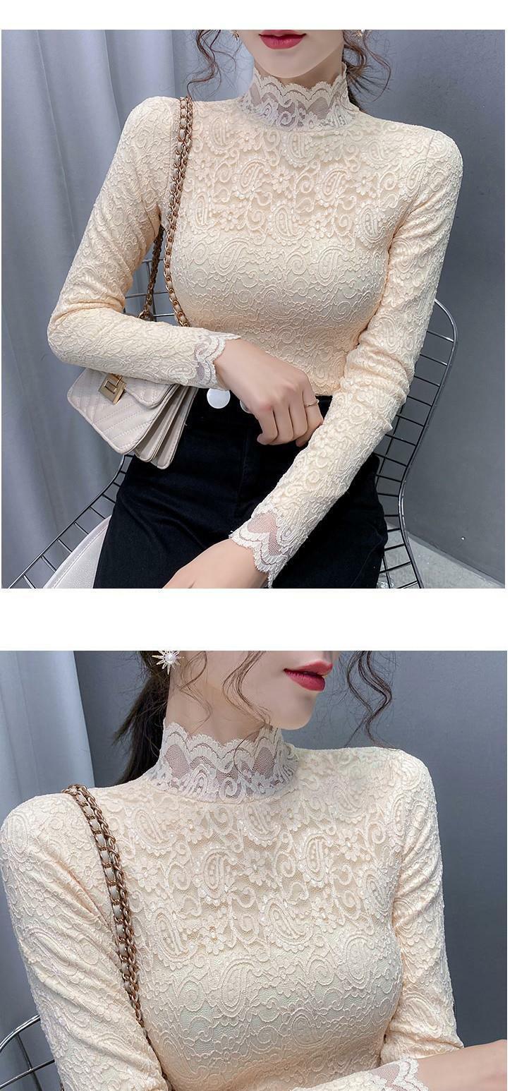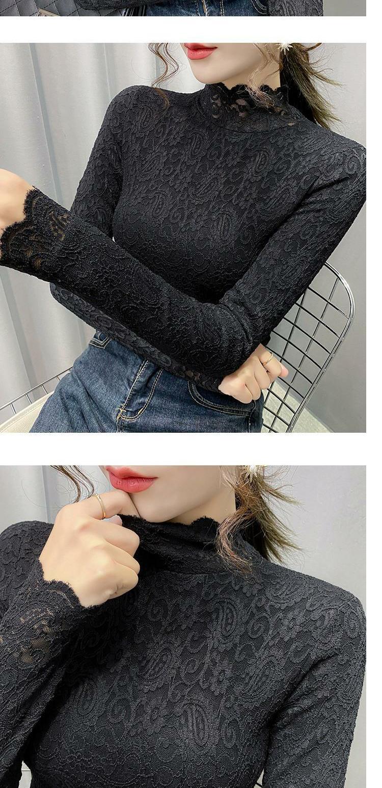 Новая годоватая рубашка для весенней новой модной плюшевой бархатной толстой кружевной рубашки для женских полей наполовину шеи для зимы, чтобы выглядеть стройно