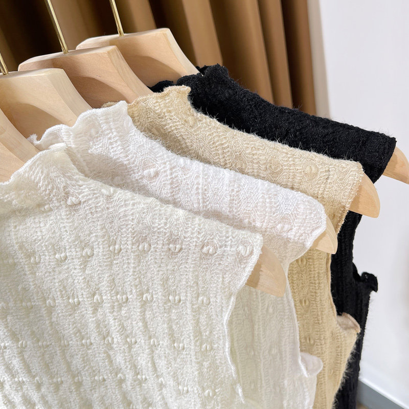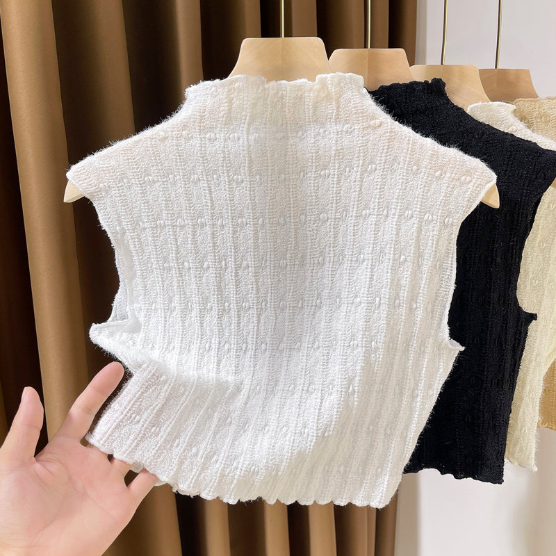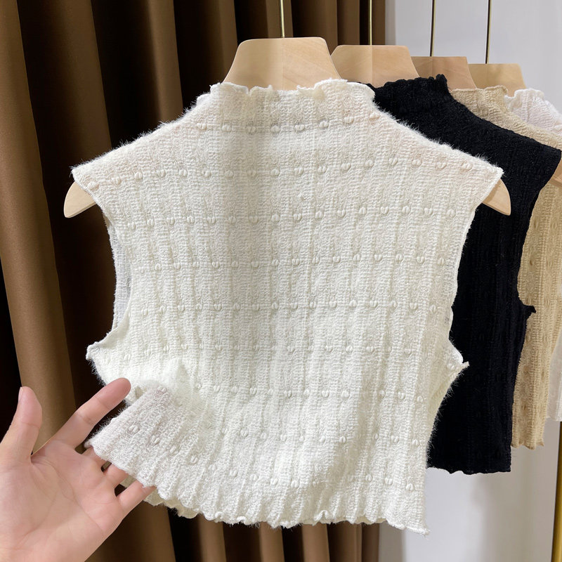 Универсальный высококлассный кружевной шелковый фальшивый воротник, приятный телу свитер, жилет без рукавов, высокий воротник