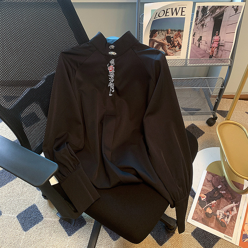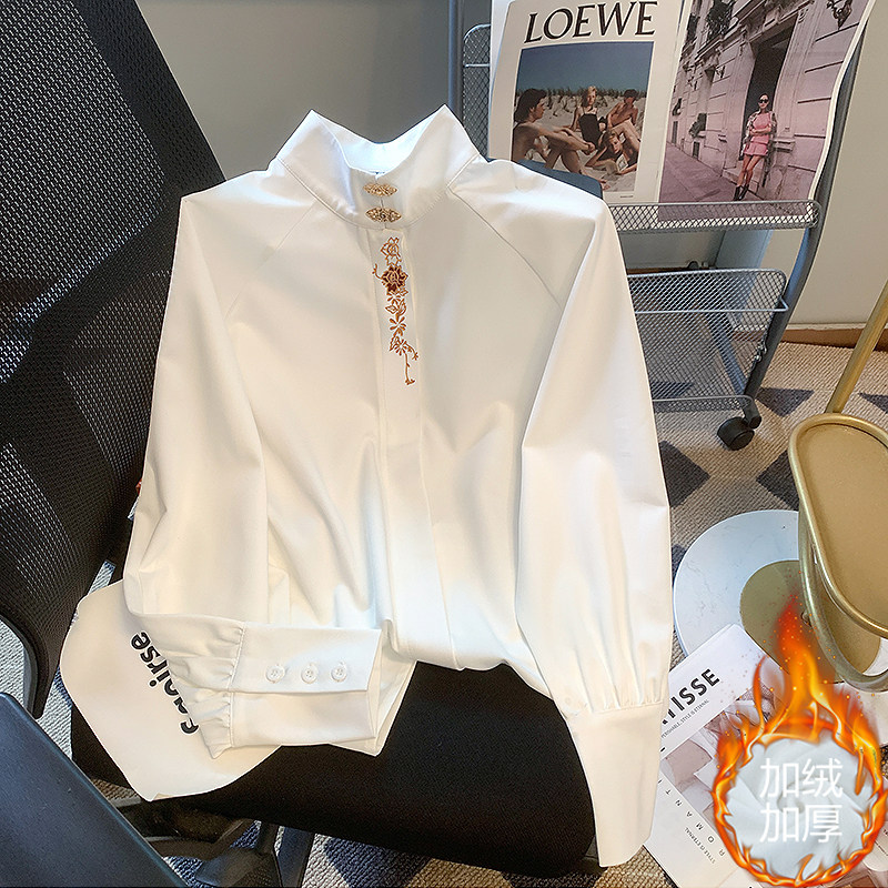 Рубашка, юбка, шифоновый демисезонный утепленный базовый лонгслив, китайский стиль