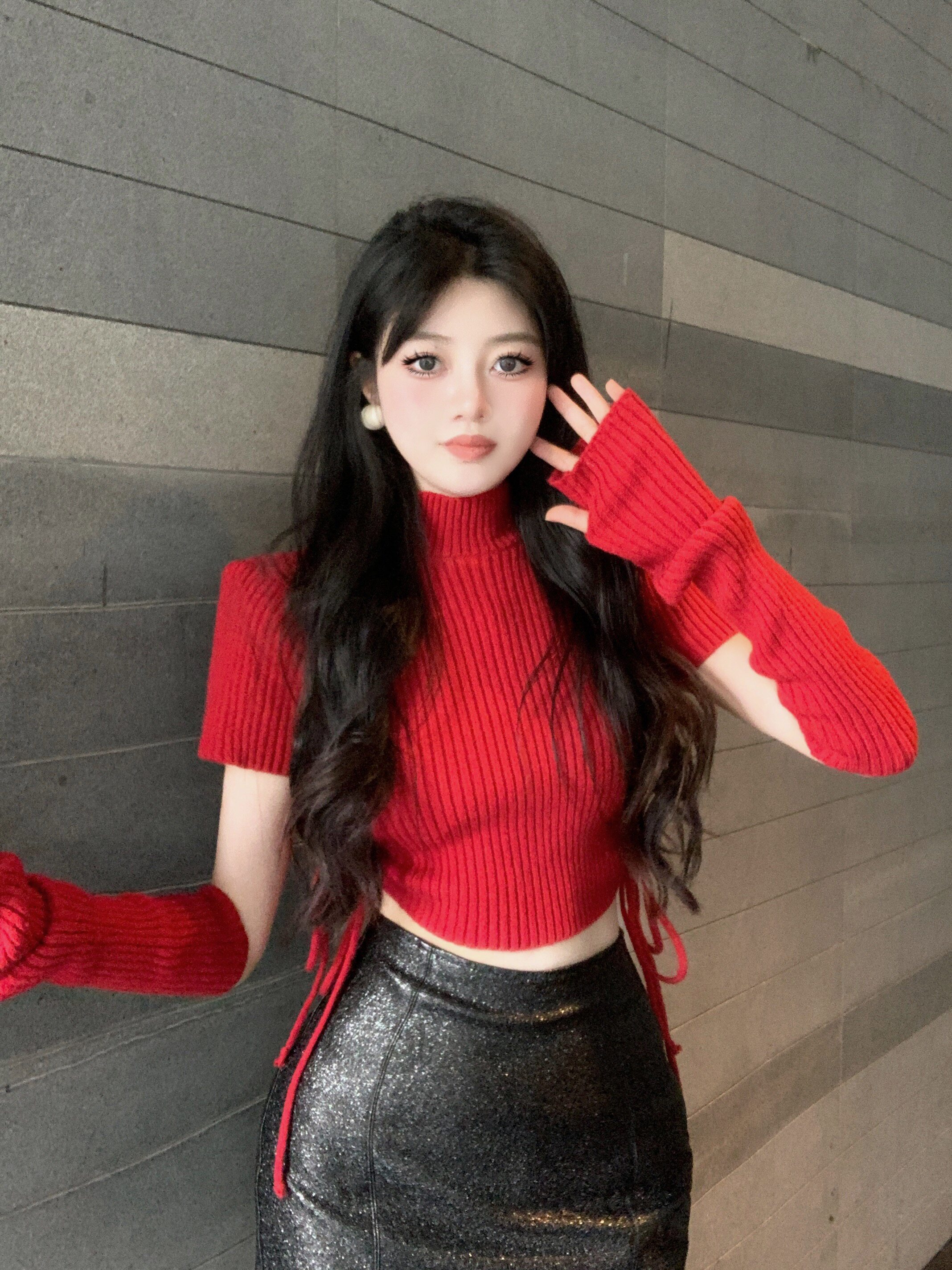 | Цвет: | Красный, трикотажный, Светлый хаки вязаный топ, Серый вязаный верх, Черная юбка, Золотая юбка |