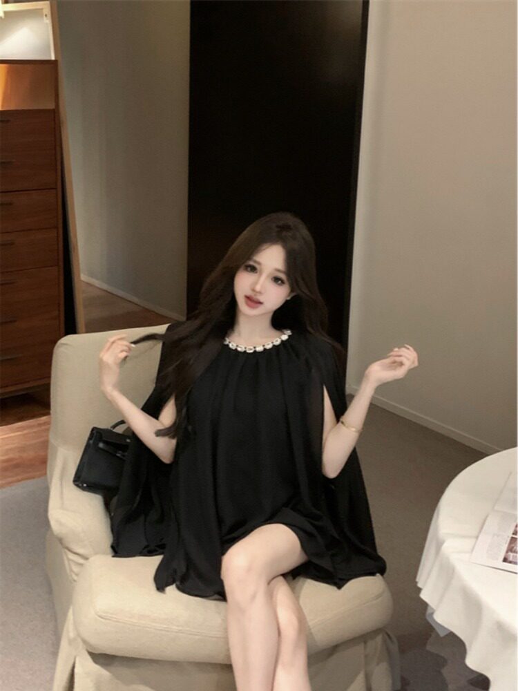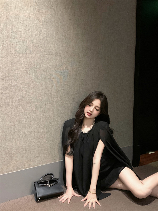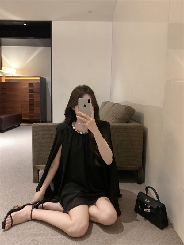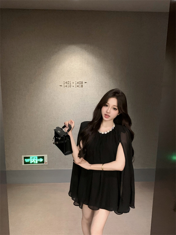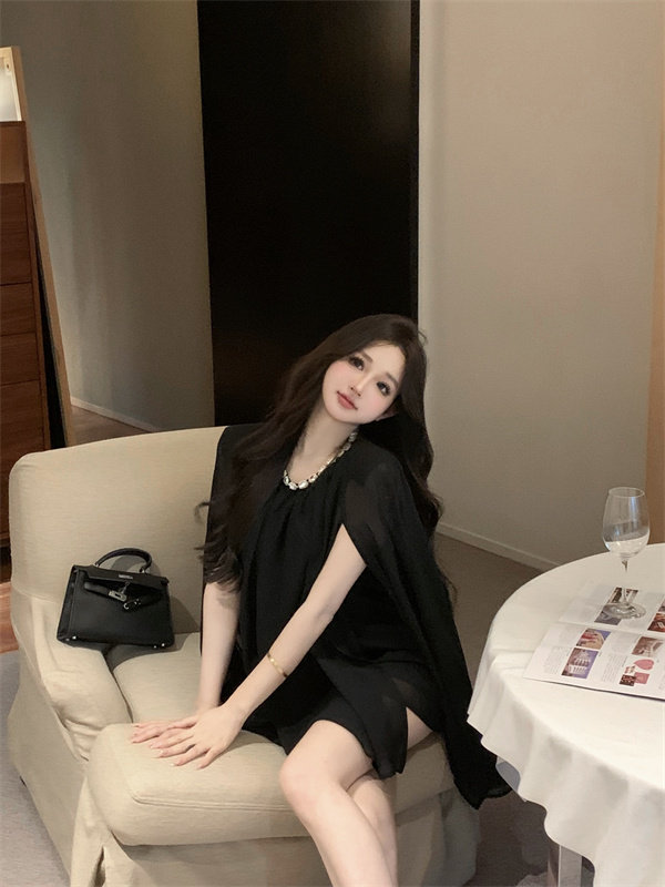 Плащ, черное масло для загара, шифоновые наплечники, изысканный стиль, яркий броский стиль