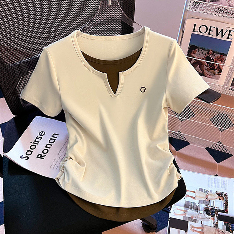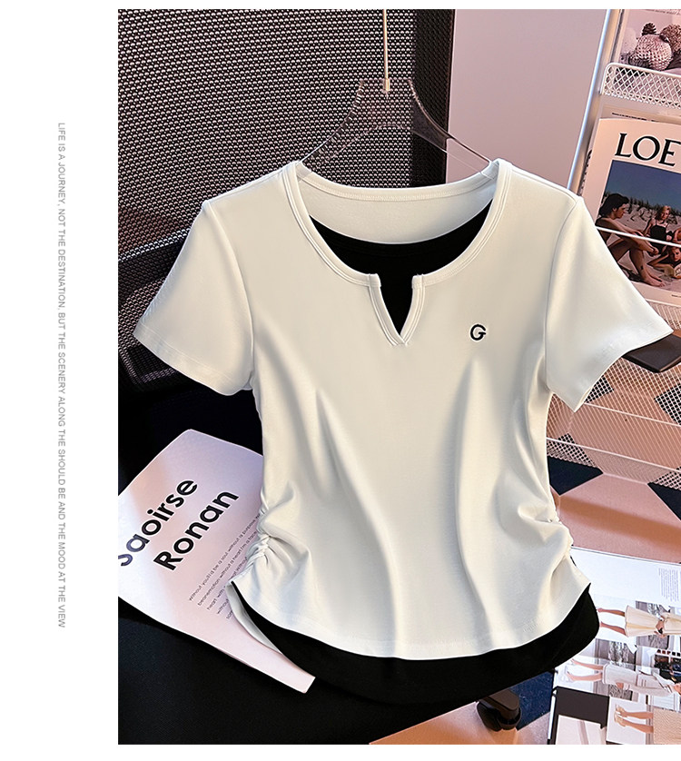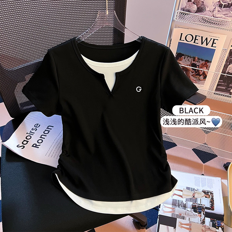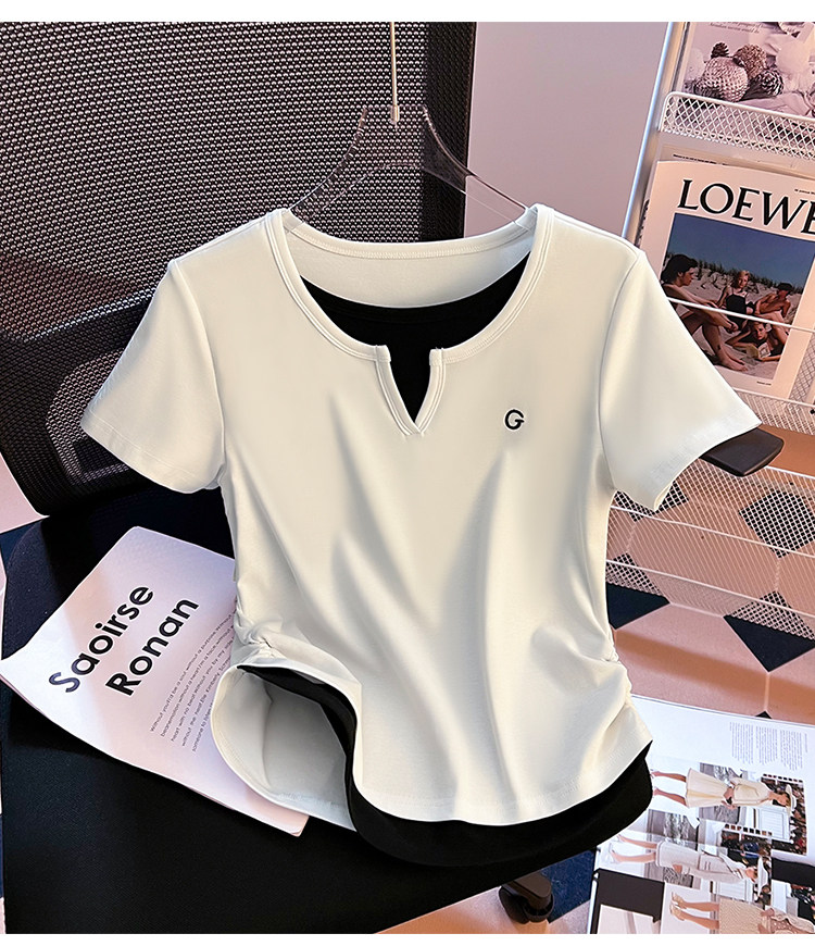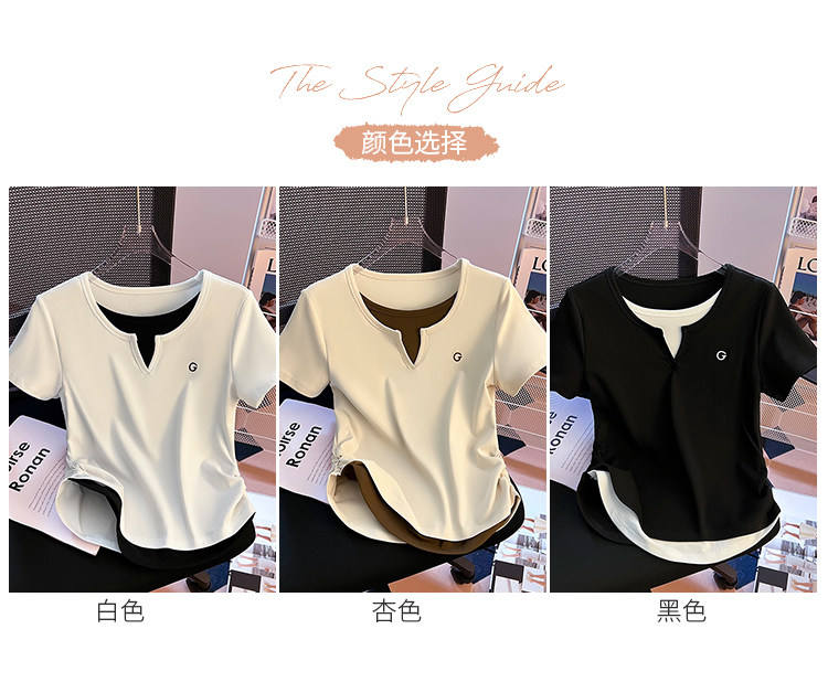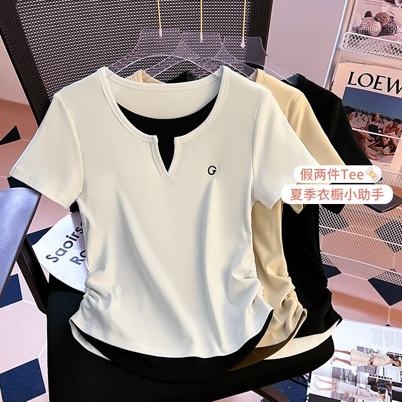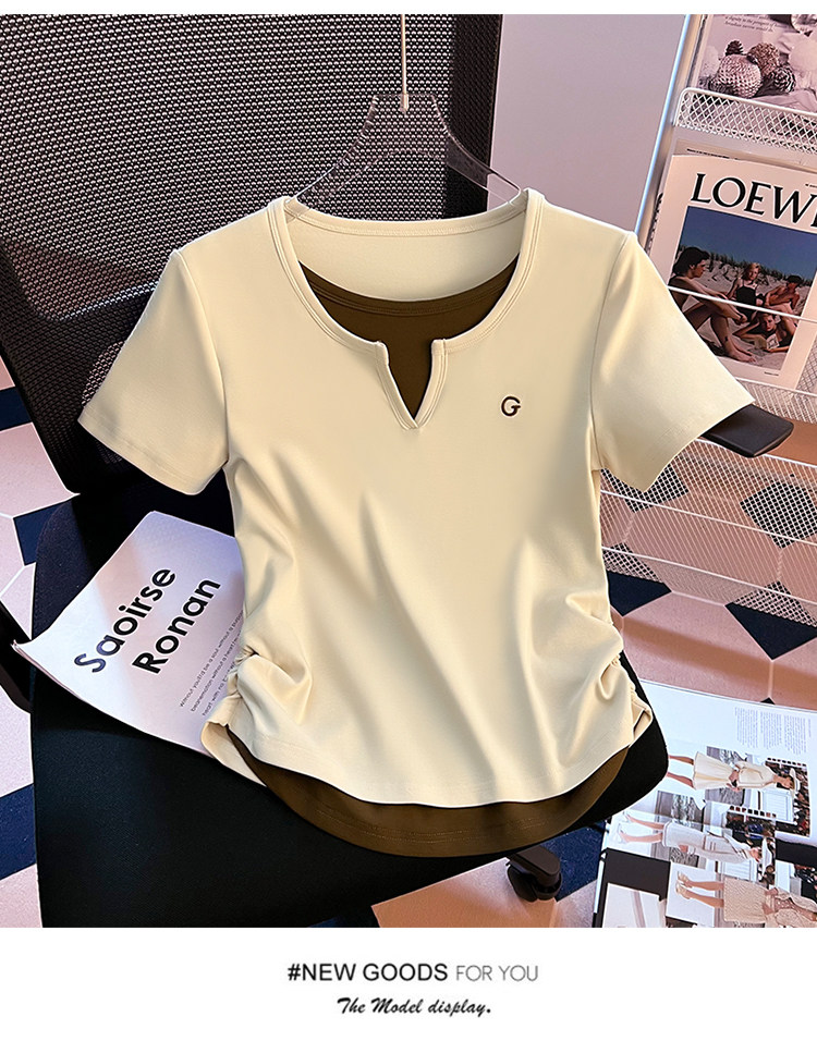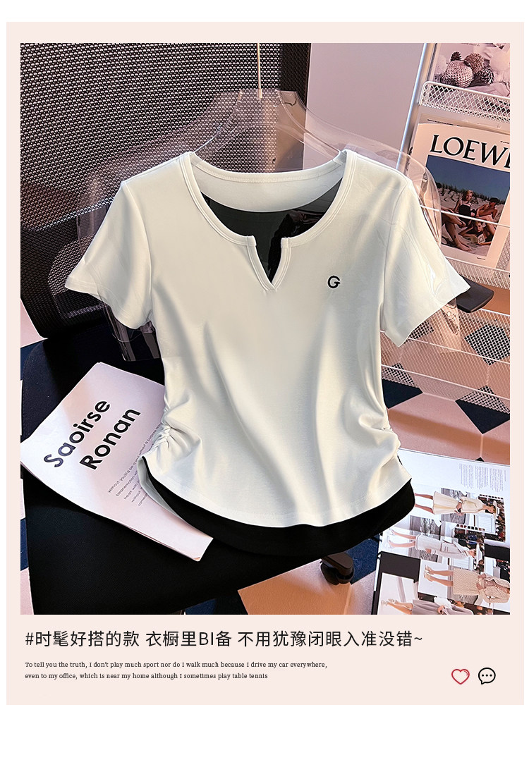 Очистка и подберите сделку ~ столовая снимает хвостовой порядок крупного бренда Foreign Trade Женская поддельная футболка с короткими рукавами V-образно