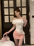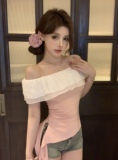 Розовая летняя футболка, открытые плечи
