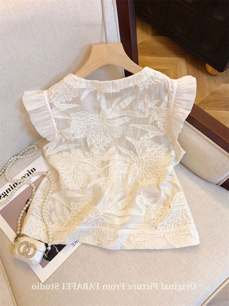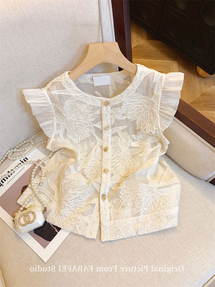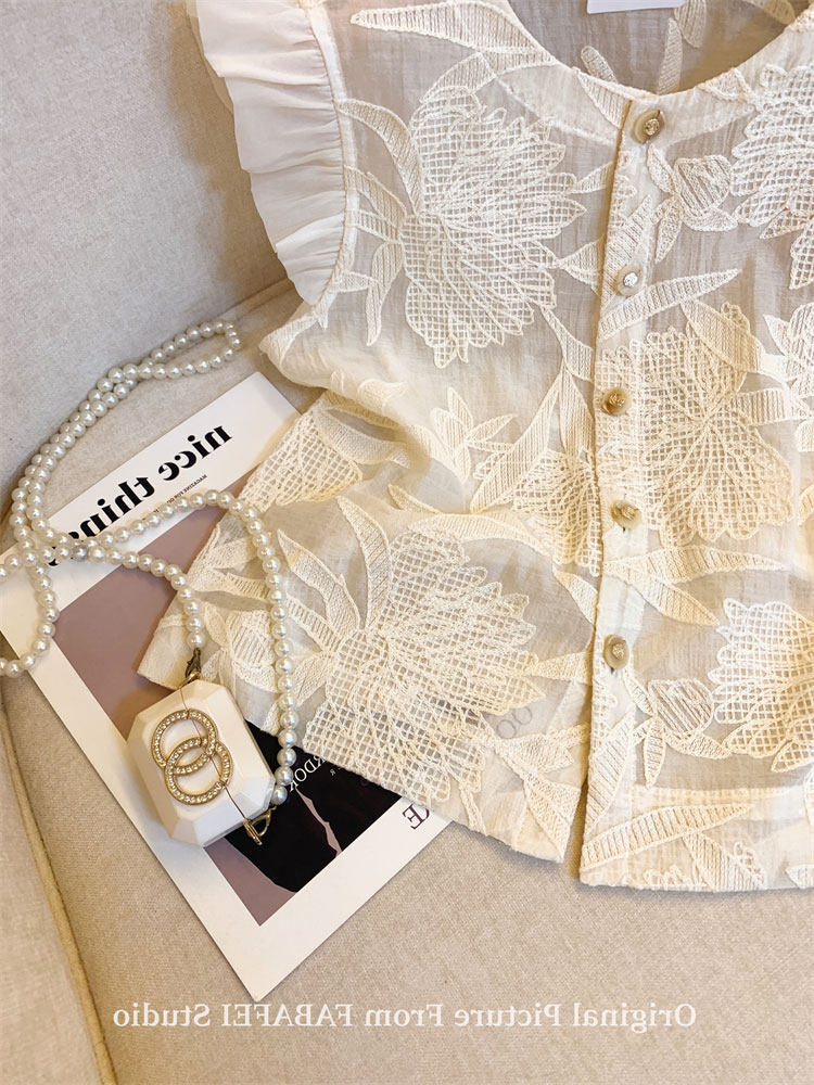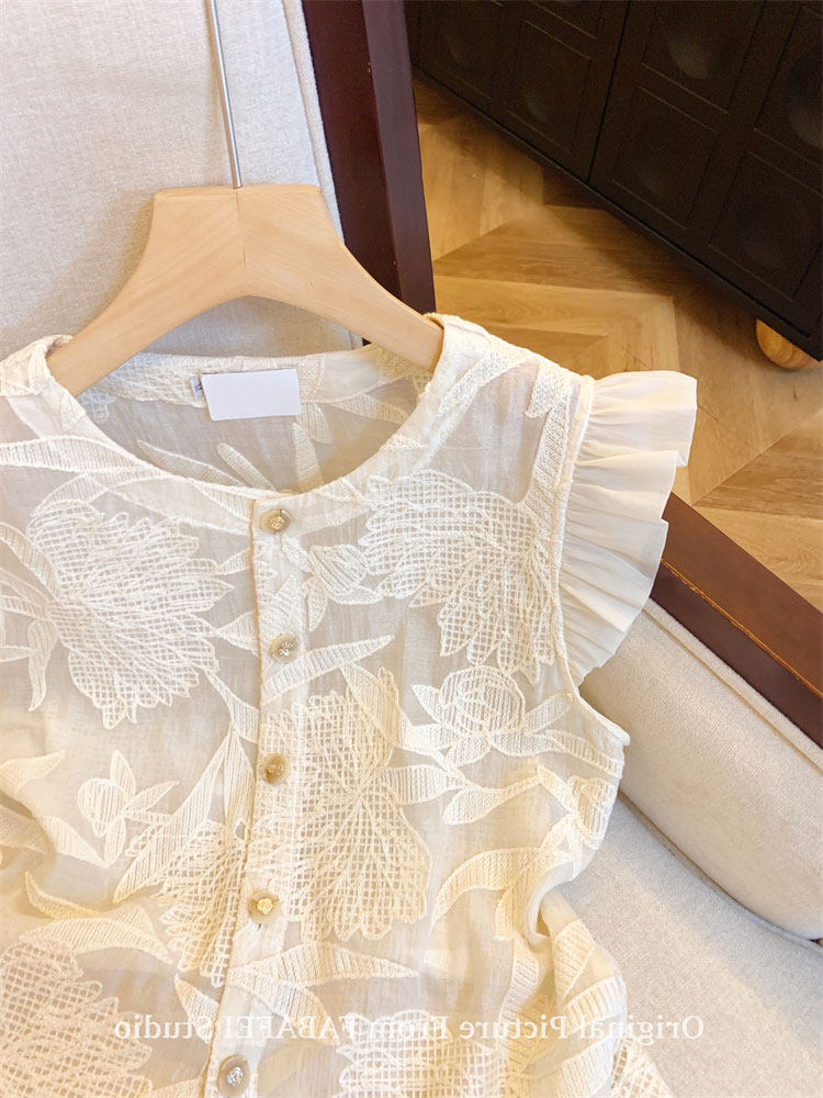 Кружевная рубашка, дизайнерская футболка без рукавов, тренд сезона, в западном стиле