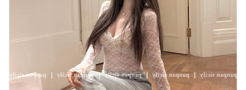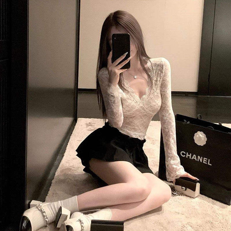 Сексуальная кружевная базовая рубашка с низким уровнем ше шлеки для женщин с модной ранней осенью горячих девушек осень и зимняя карта Deep V-образные лучшие вершины
