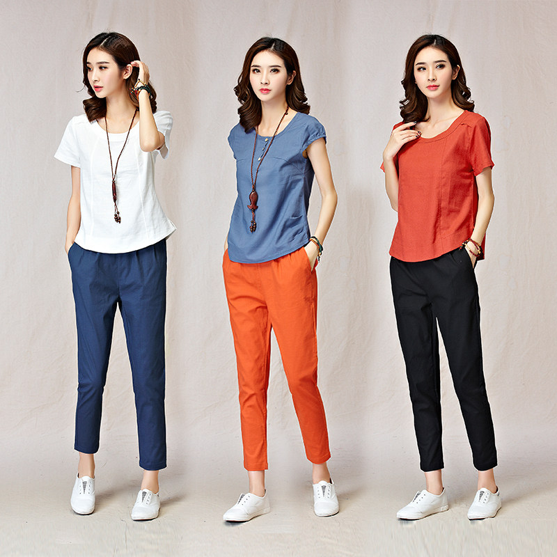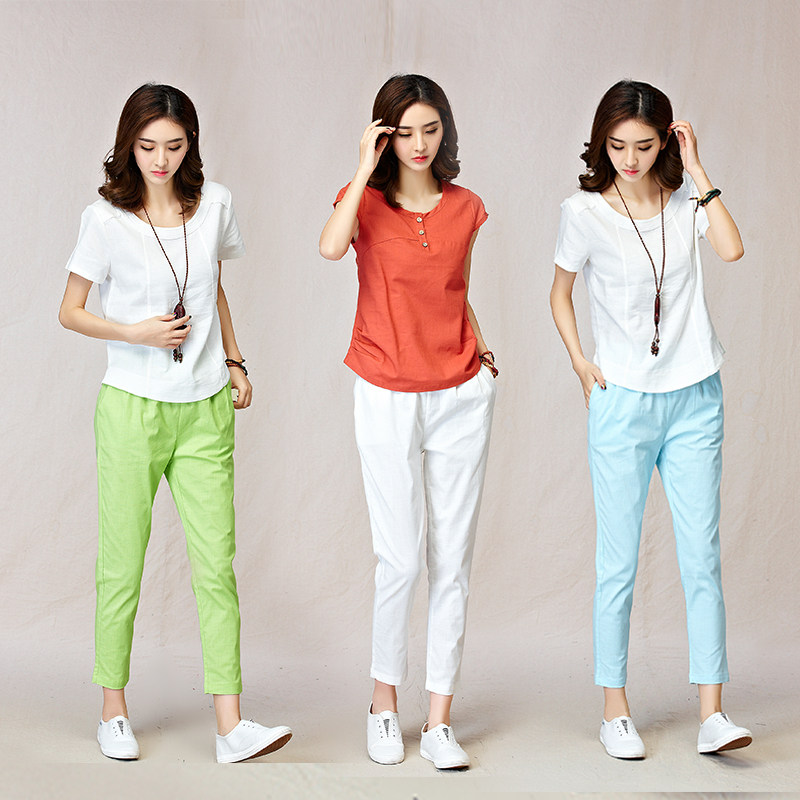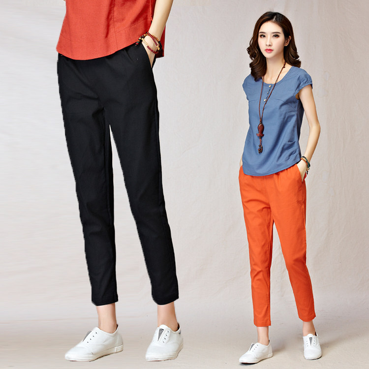 Осенние тонкие штаны, коллекция 2021, из хлопка и льна, оверсайз, на резинке