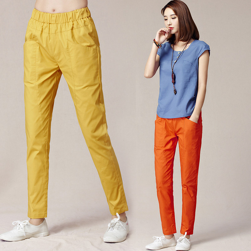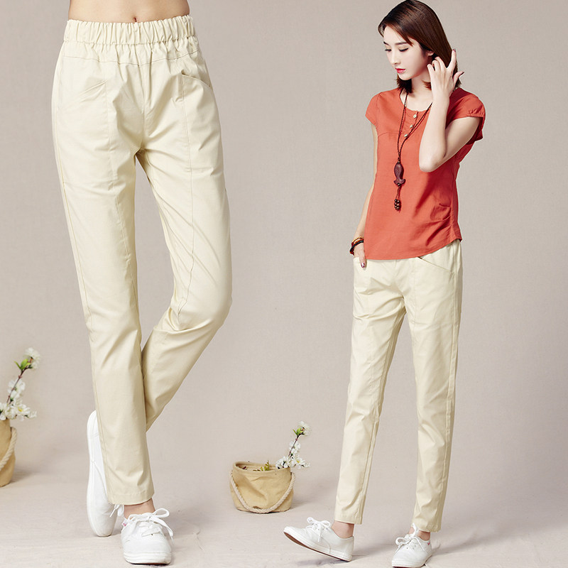Штаны, тонкие ретро леггинсы, коллекция 2021, из хлопка и льна, эластичная талия, свободный крой, высокая талия