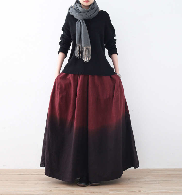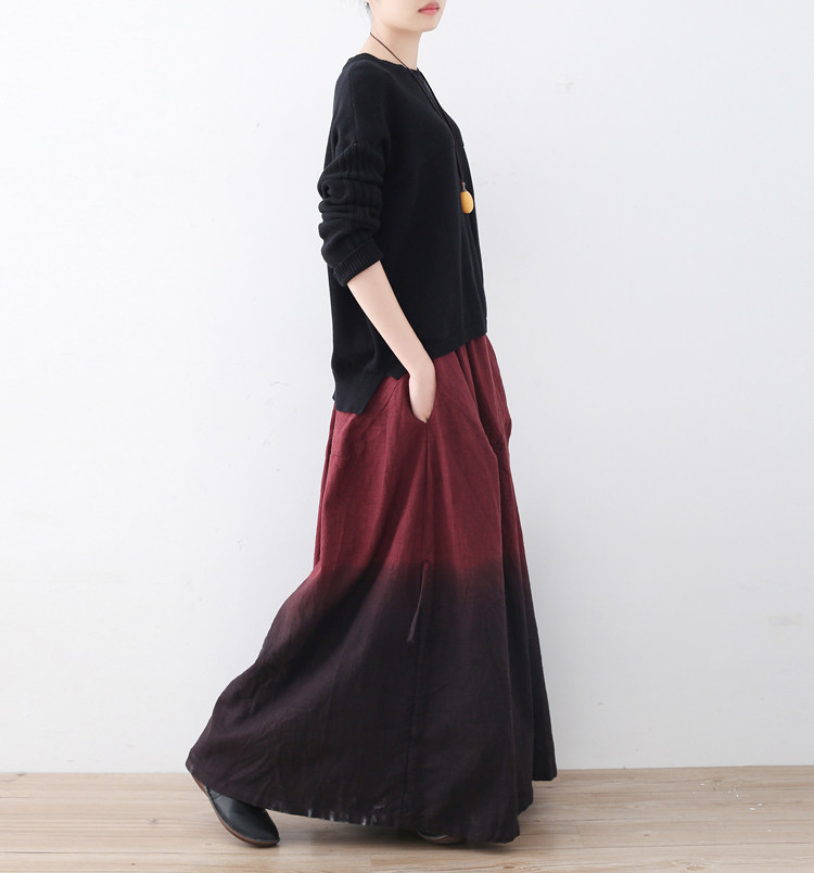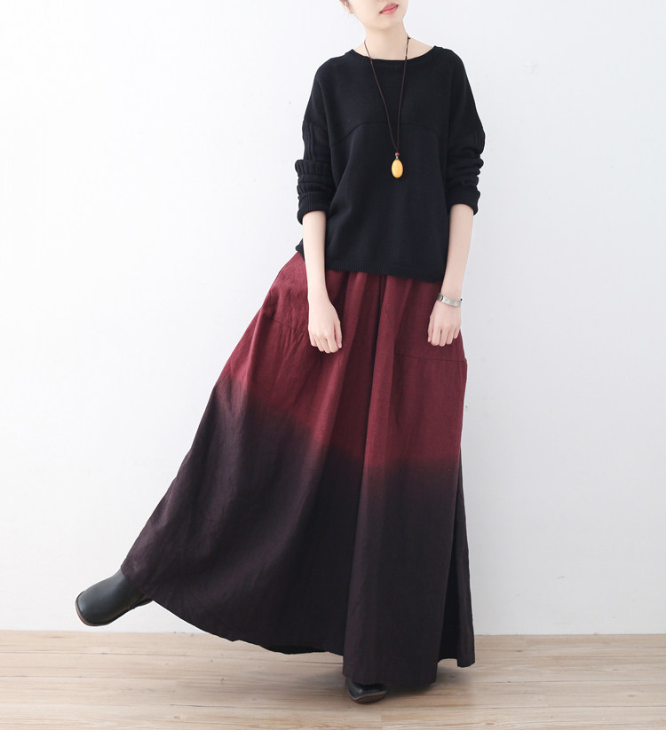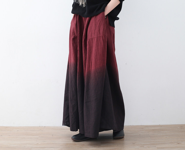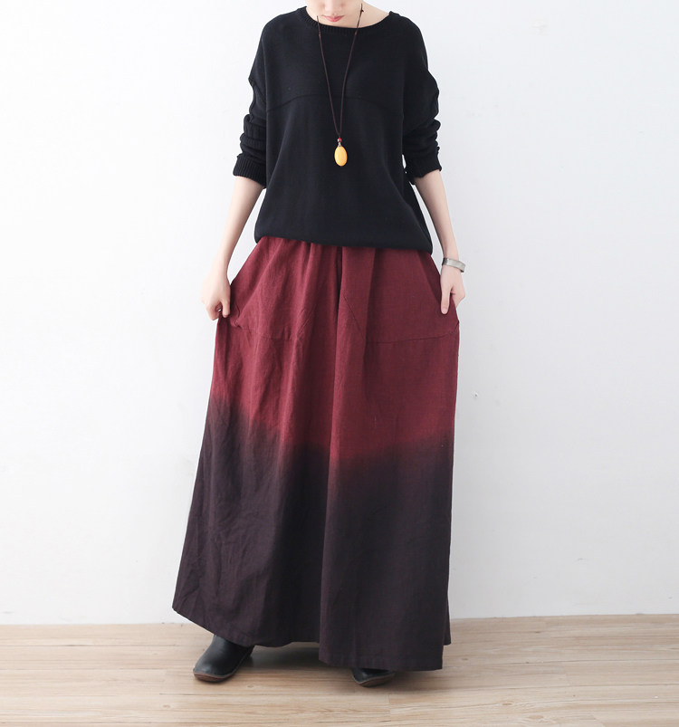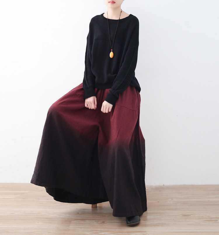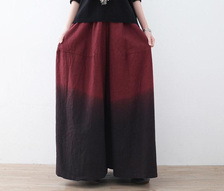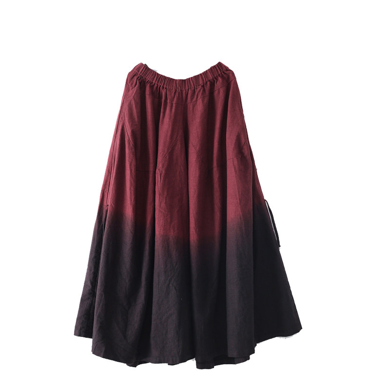 Демисезонная ретро этническая длинная юбка, штаны, этнический стиль, градиент, свободный крой