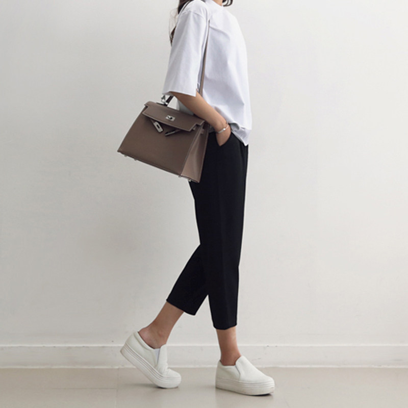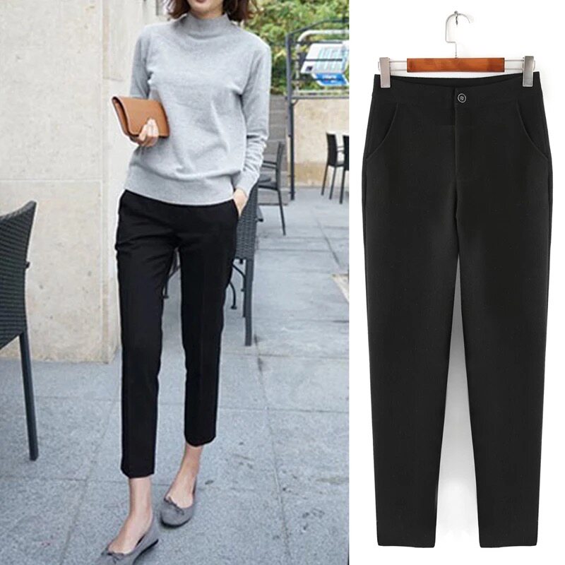 Весенний костюм, черные штаны для отдыха, черный карандаш, в корейском стиле, по фигуре