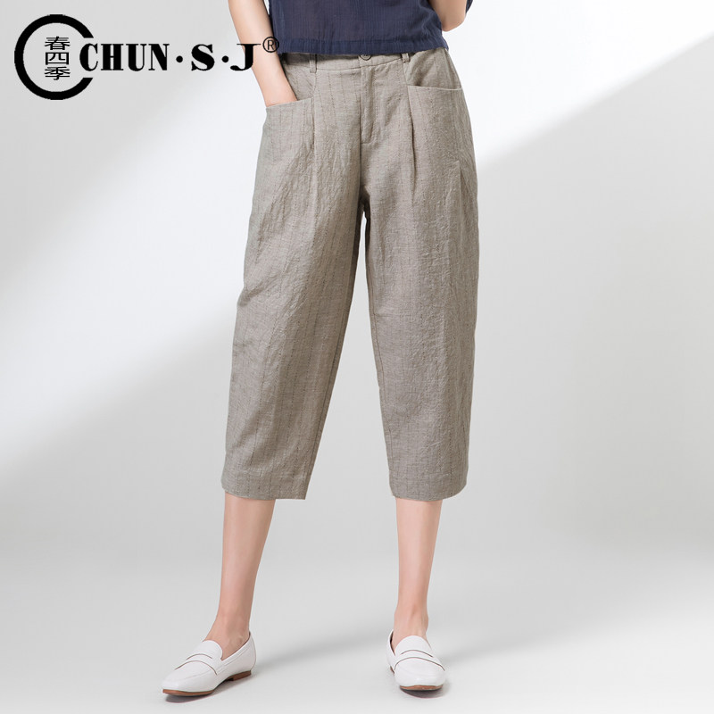 Летние штаны, тонкий фонарь, из хлопка и льна, по фигуре, коллекция 2022