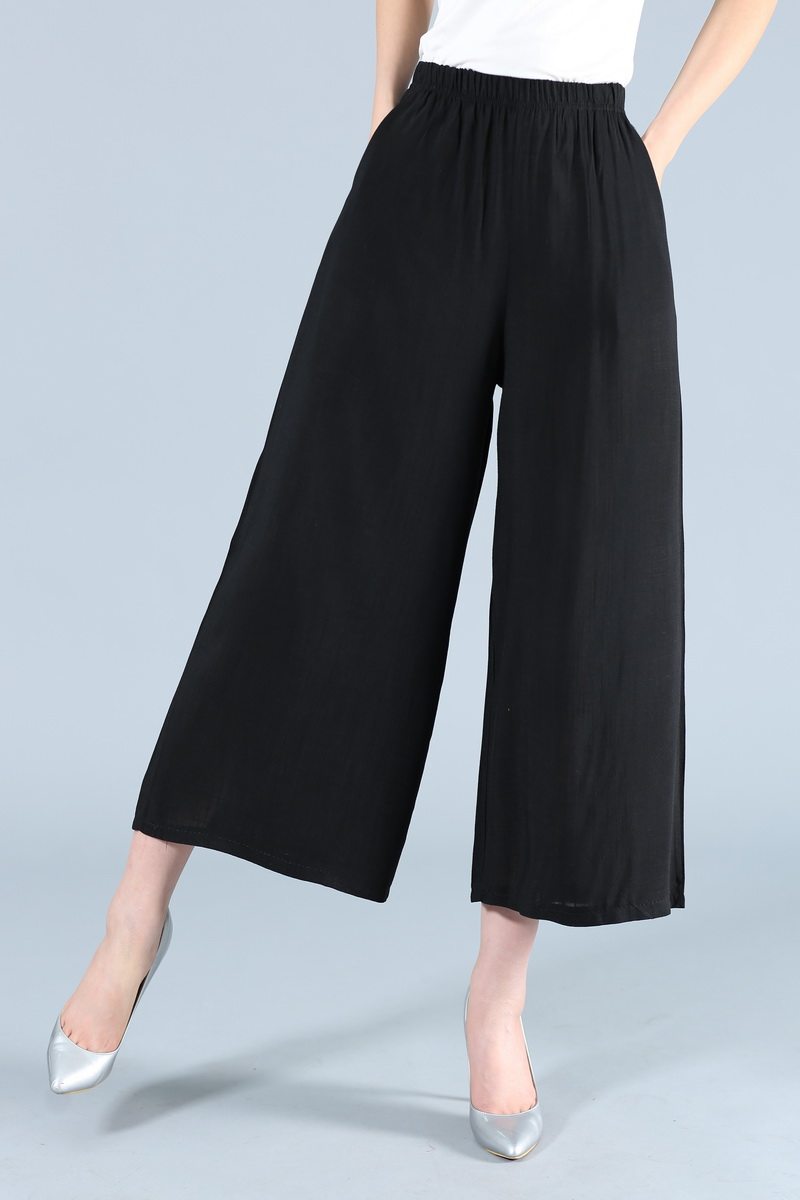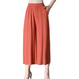 Штаны, юбка для отдыха, для среднего возраста, большой размер, из хлопка и льна, эластичная талия