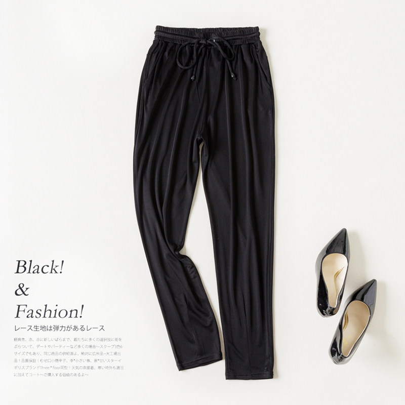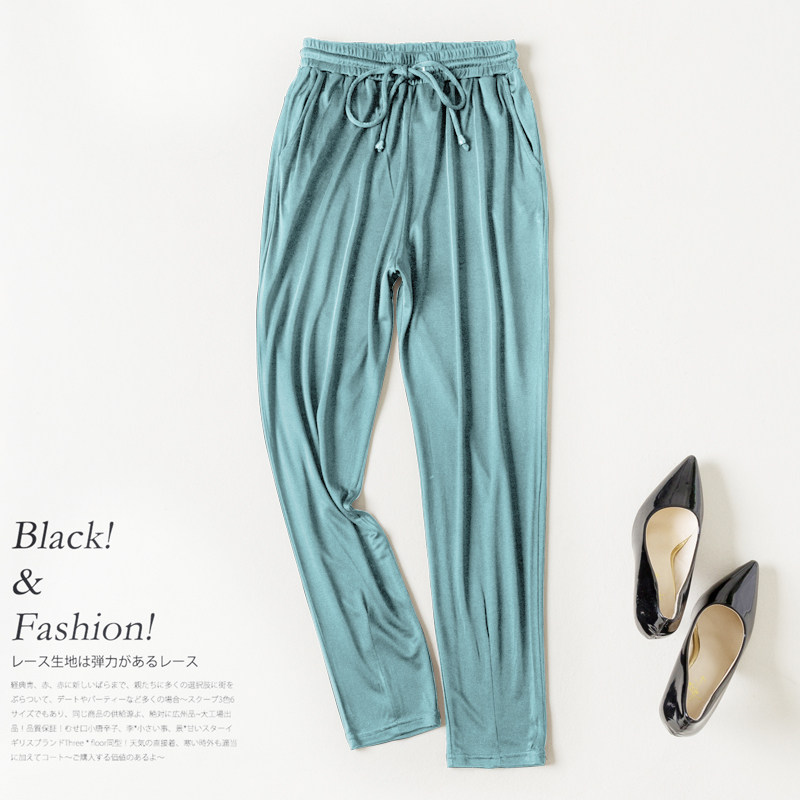 Двусторонние трикотажные шелковые тонкие штаны для отдыха, оверсайз, эластичная талия