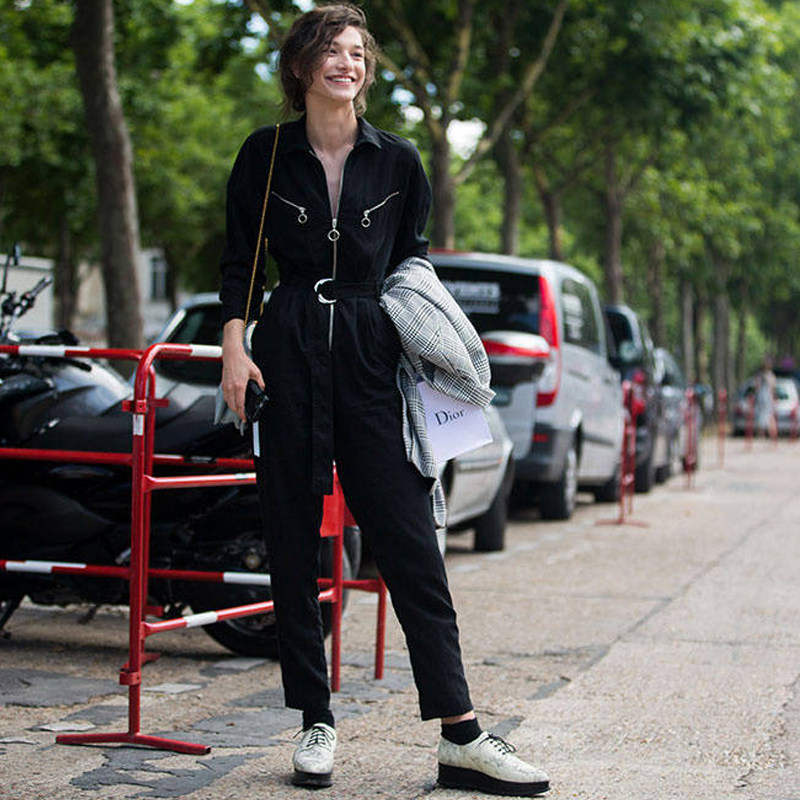 | Цвет: | Черный комбинезон с молнией с карманами, ремень |