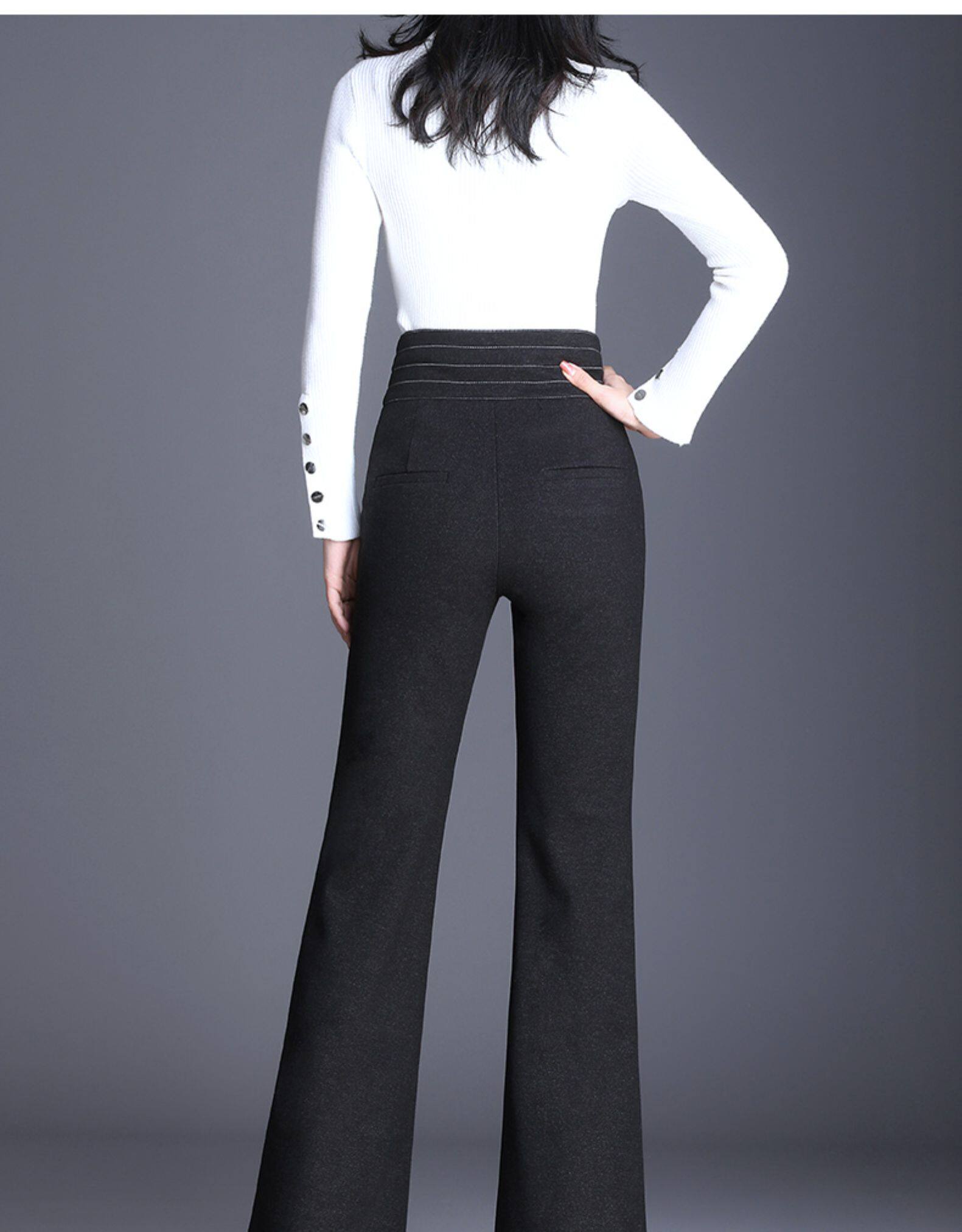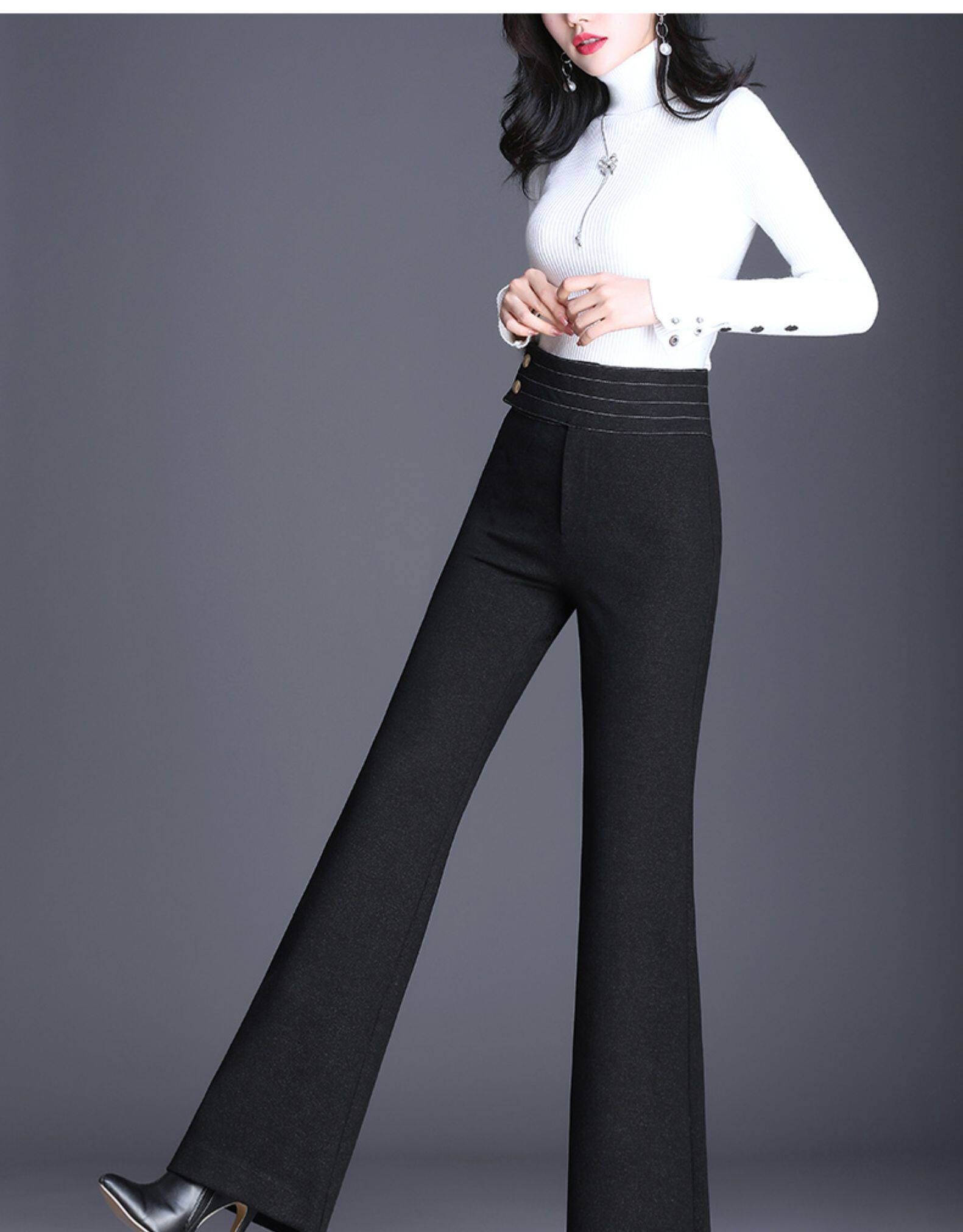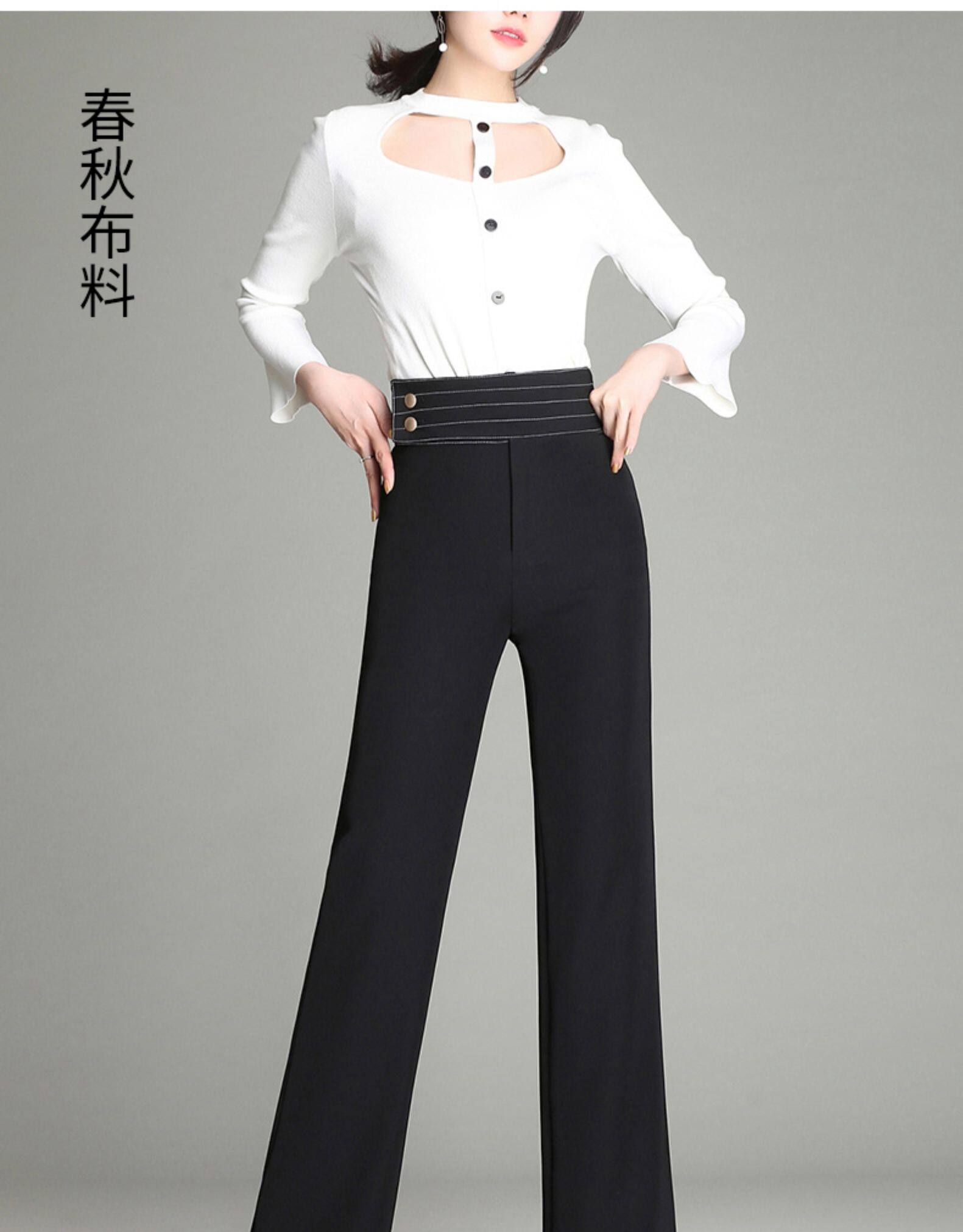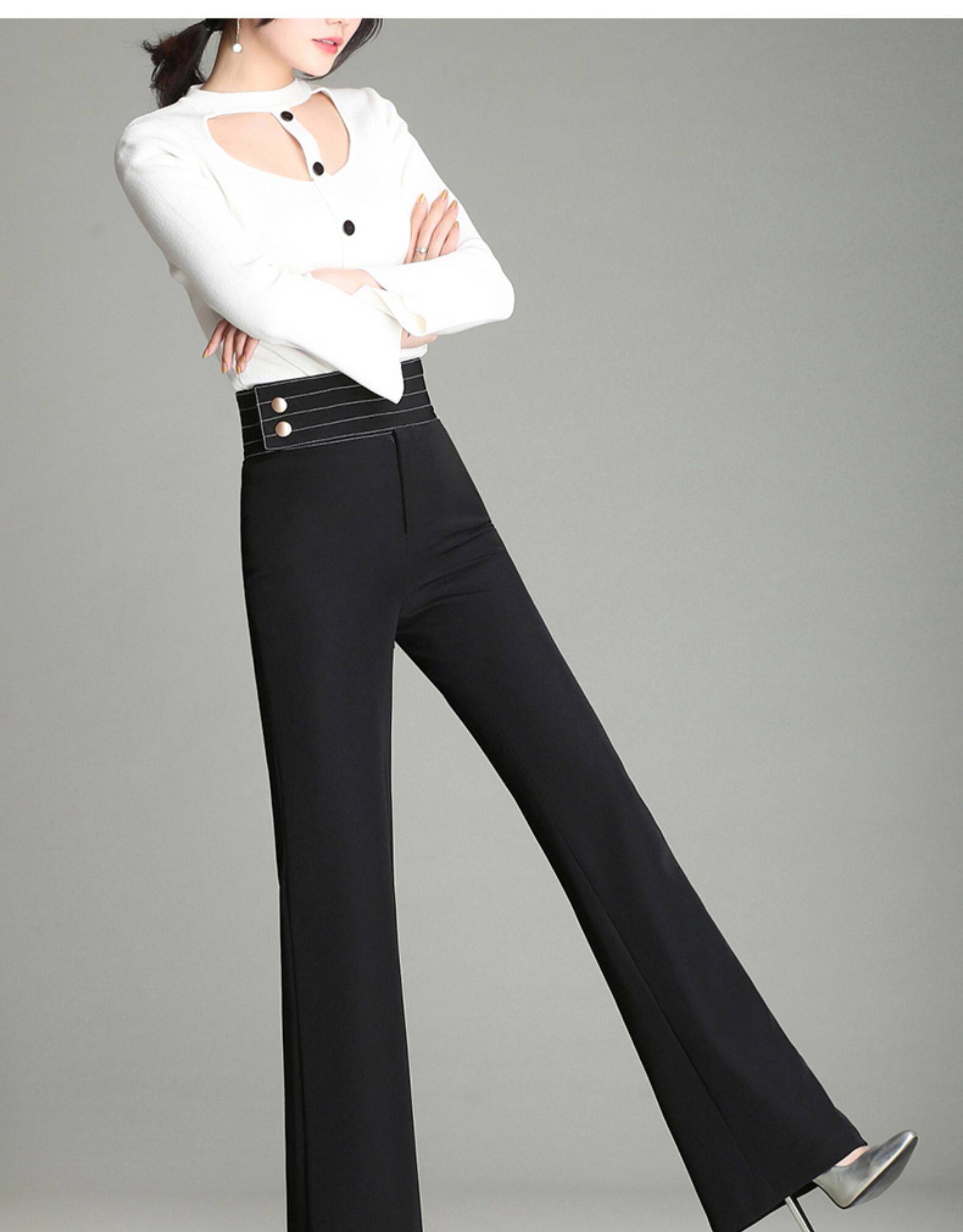 Демисезонные штаны, штаны-клёш, 2020, высокая талия, свободный прямой крой