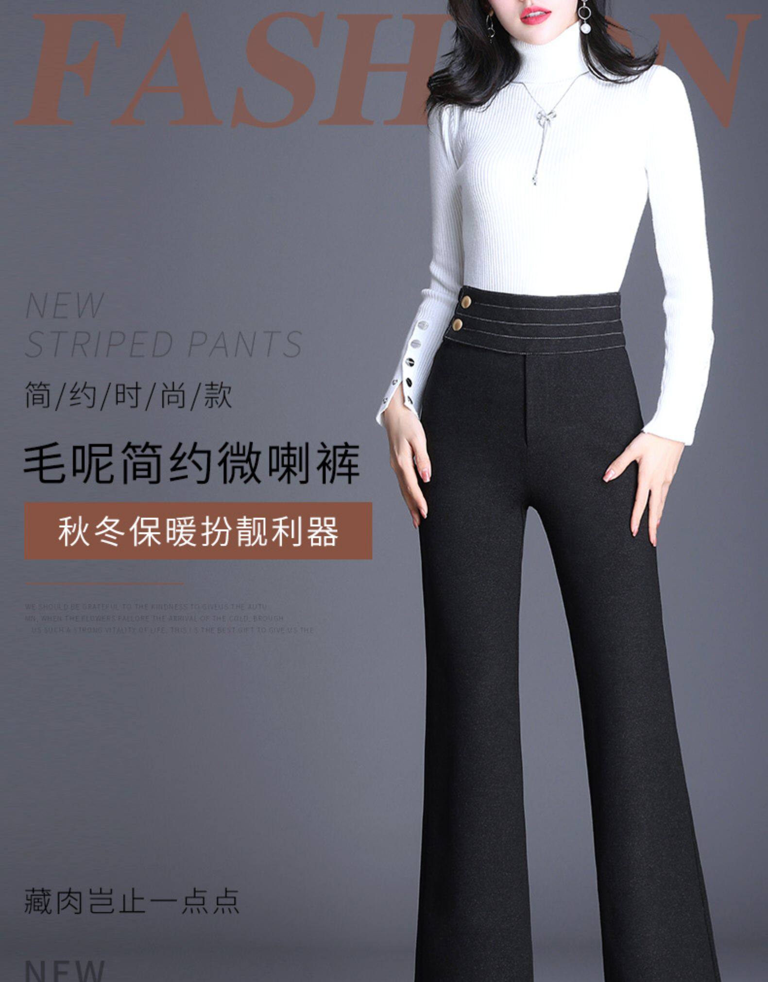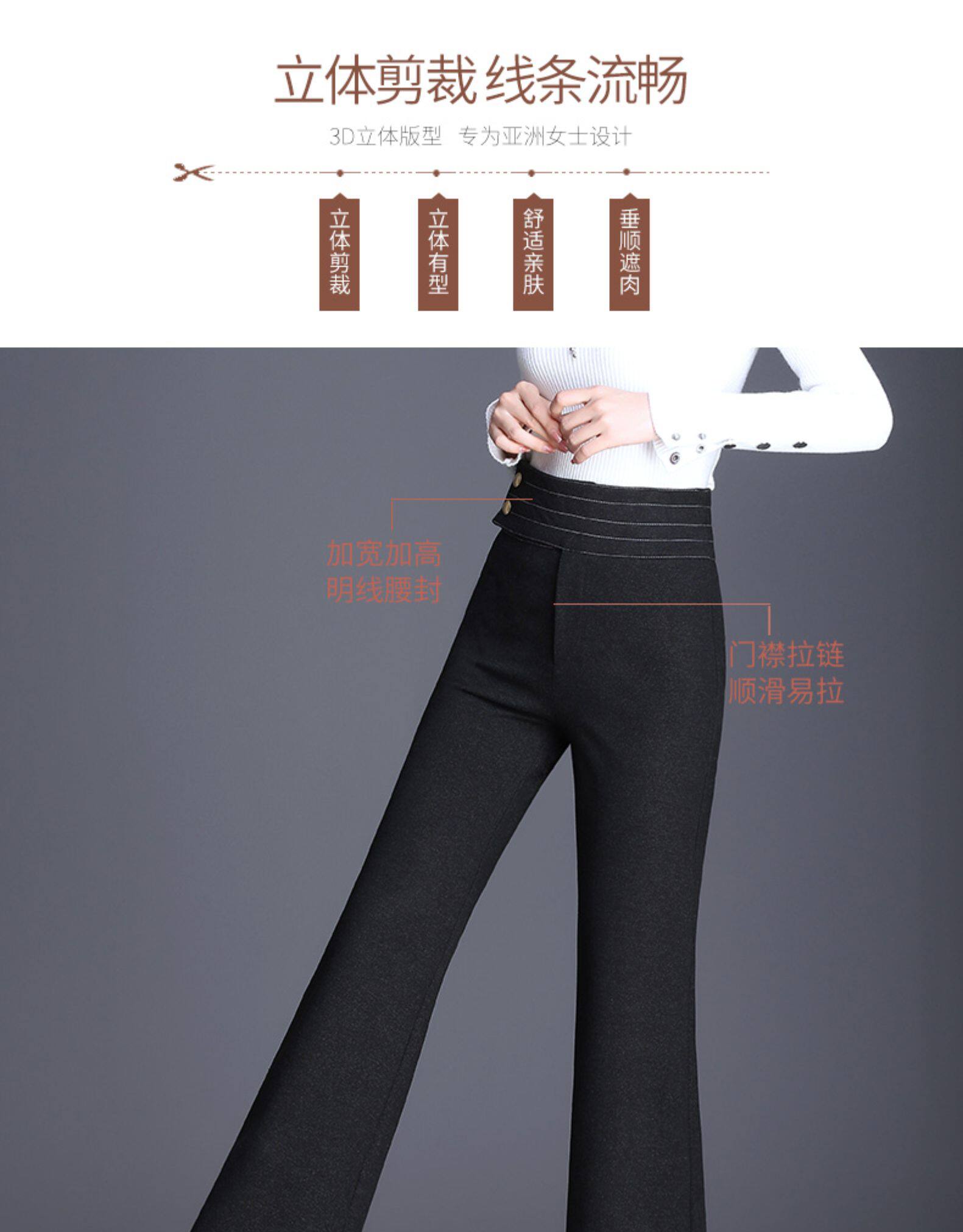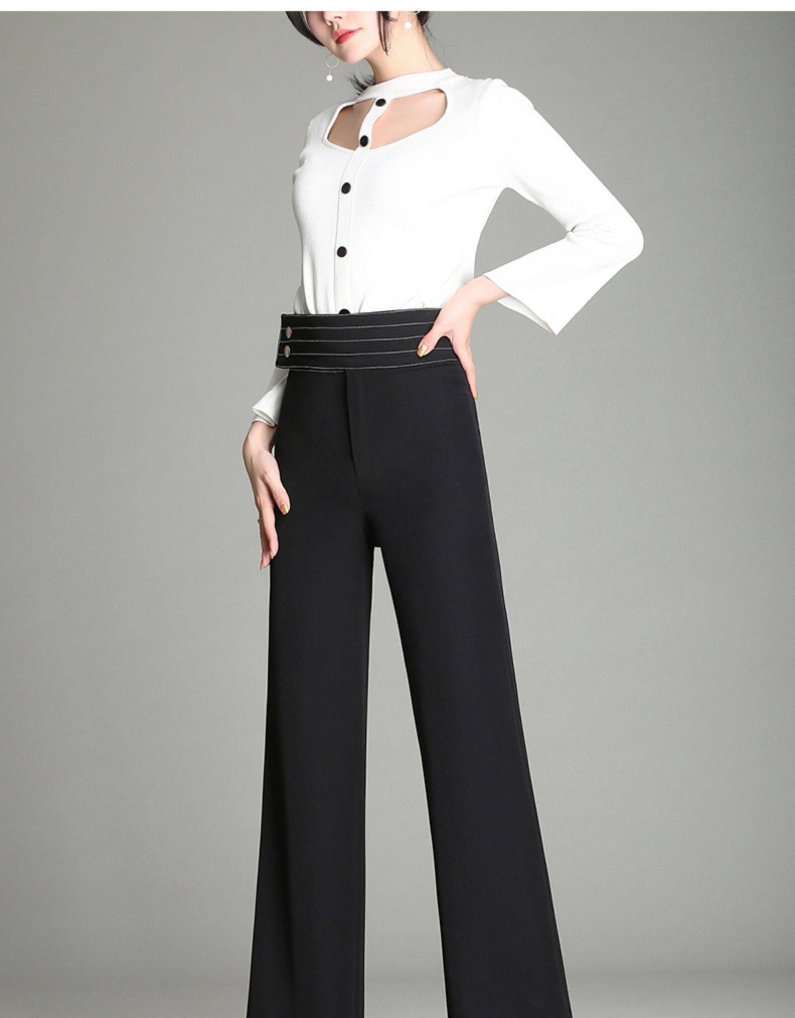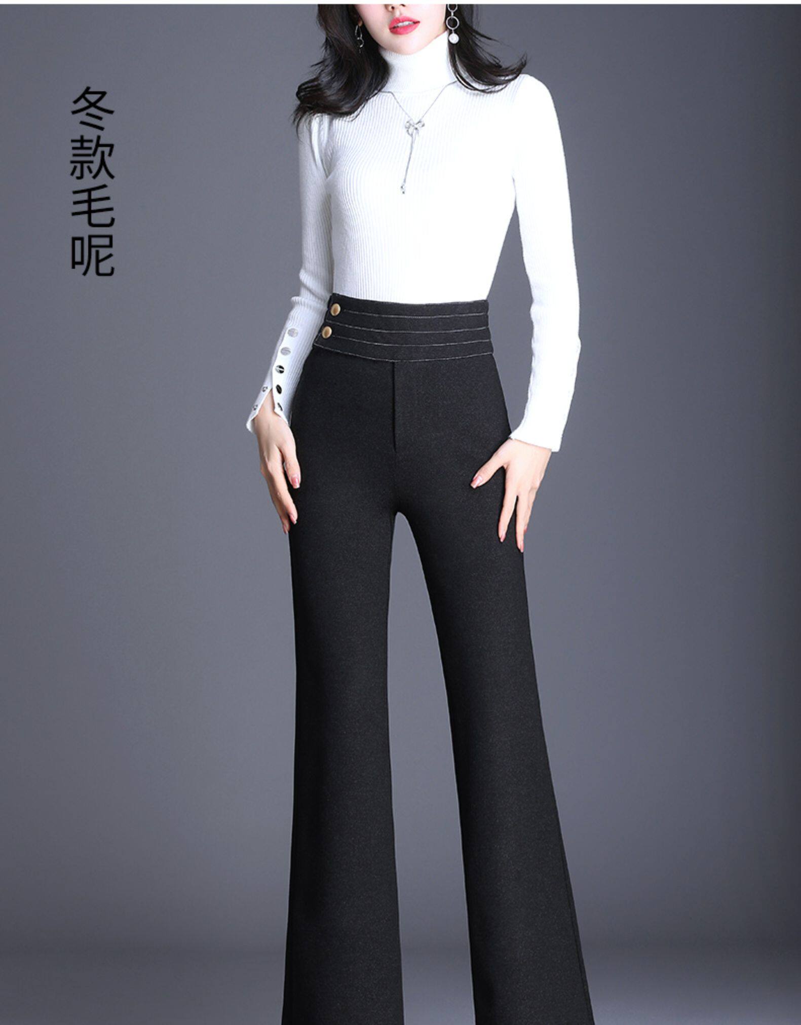 Демисезонные штаны, штаны-клёш, 2020, высокая талия, свободный прямой крой