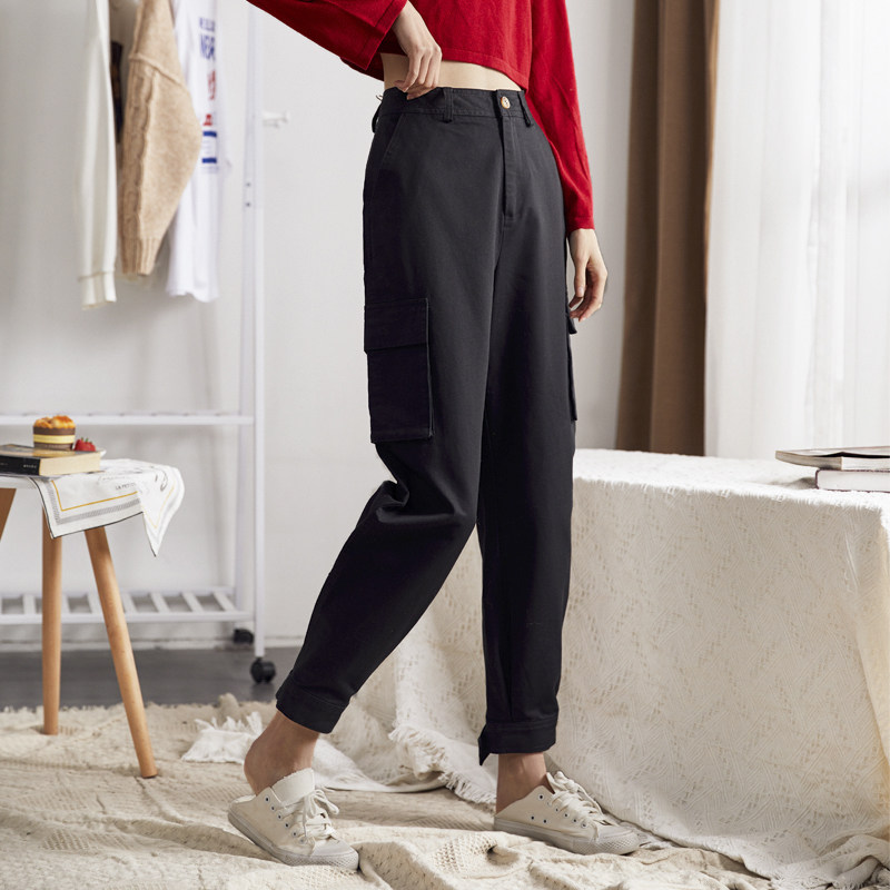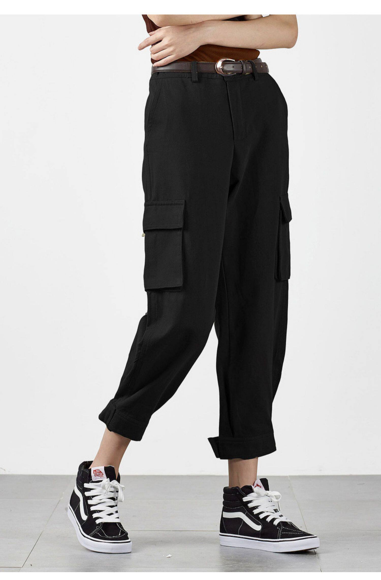 Черные штаны на липучке, высокая талия