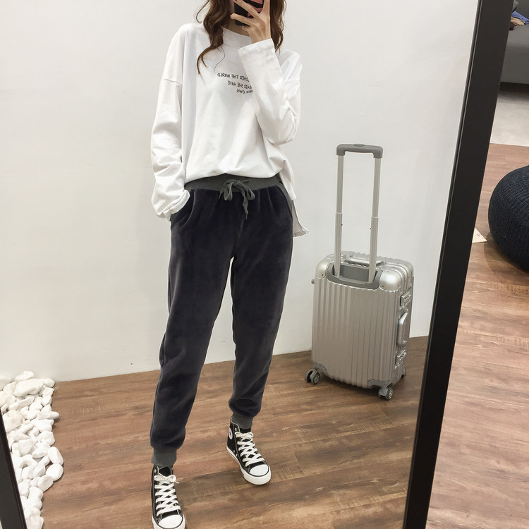 Утепленные бархатные штаны для отдыха, в корейском стиле, свободный крой, большой размер