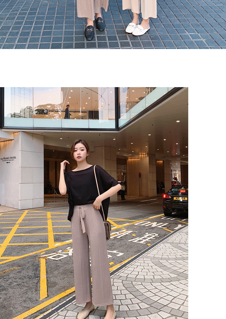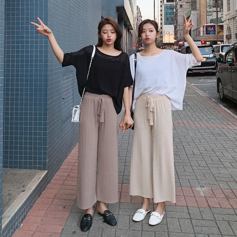 Шелковые шифоновые тонкие штаны для школьников, высокая талия, по фигуре, в западном стиле, свободный прямой крой
