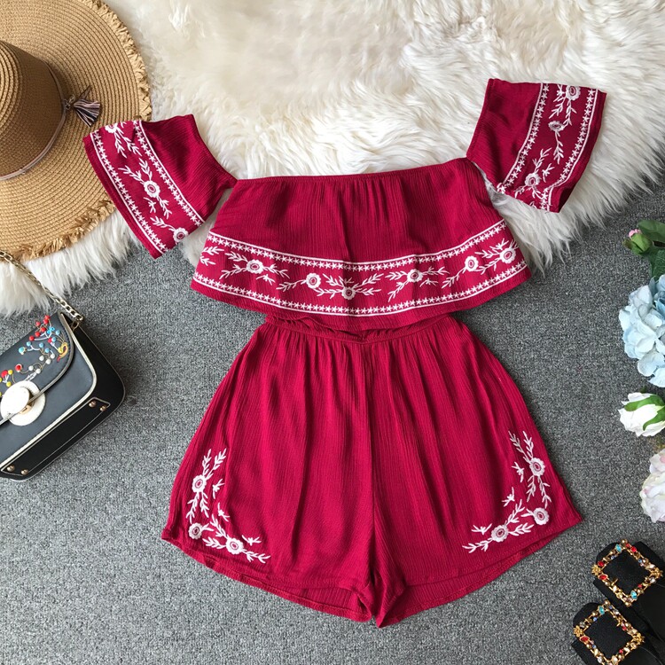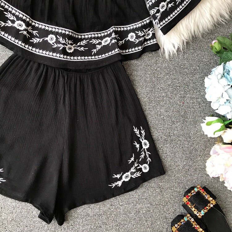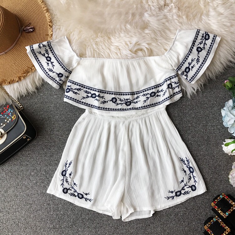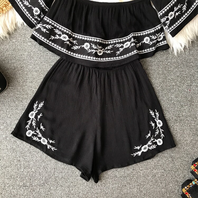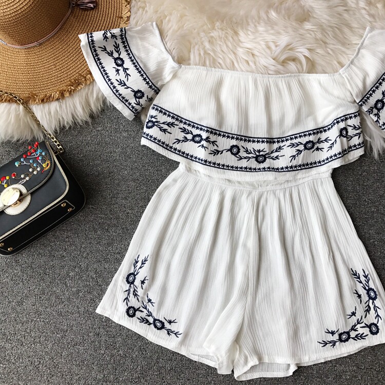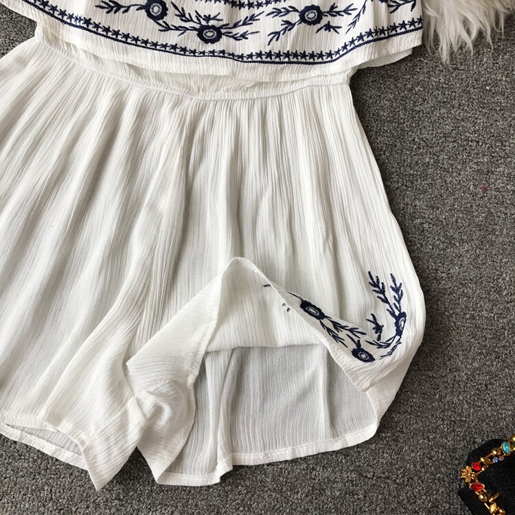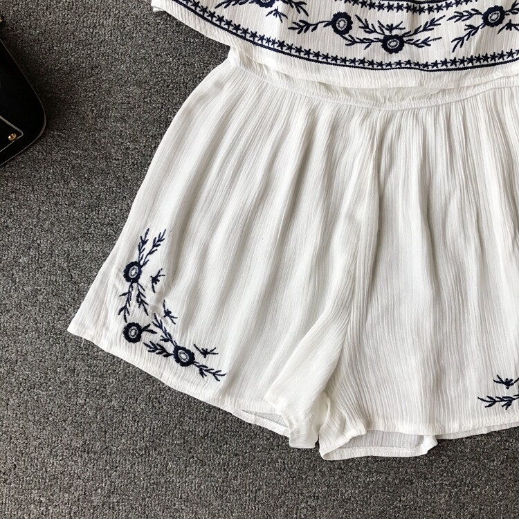 Футболка, этнический комбинезон, летняя одежда, корсет, шорты, короткий рукав, этнический стиль, с вышивкой, свободный крой