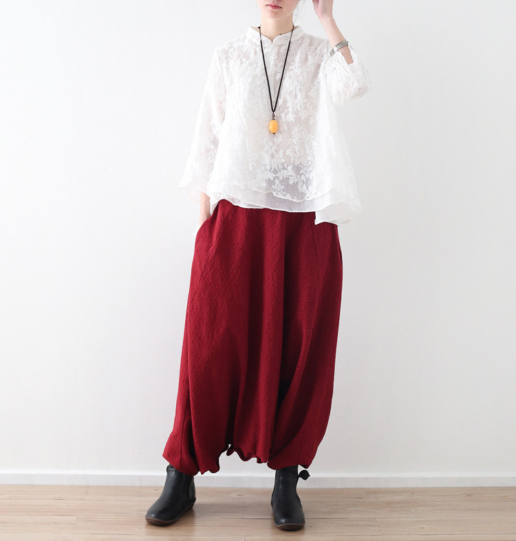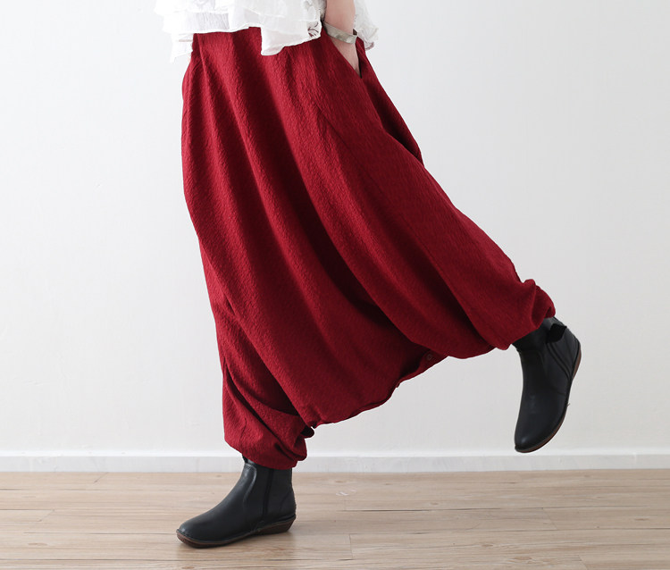 Весенние оригинальные штаны, юбка, оверсайз, из хлопка и льна