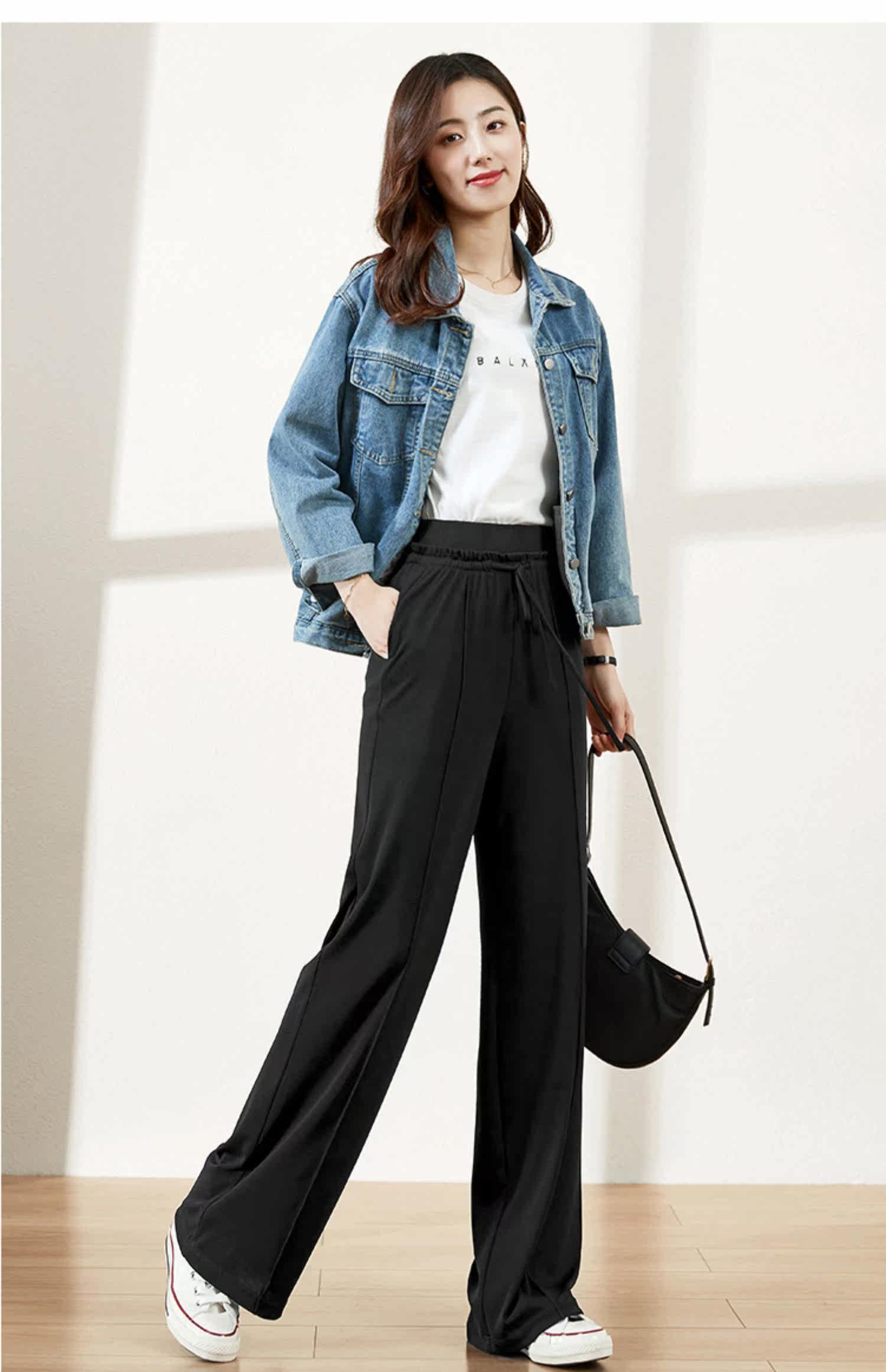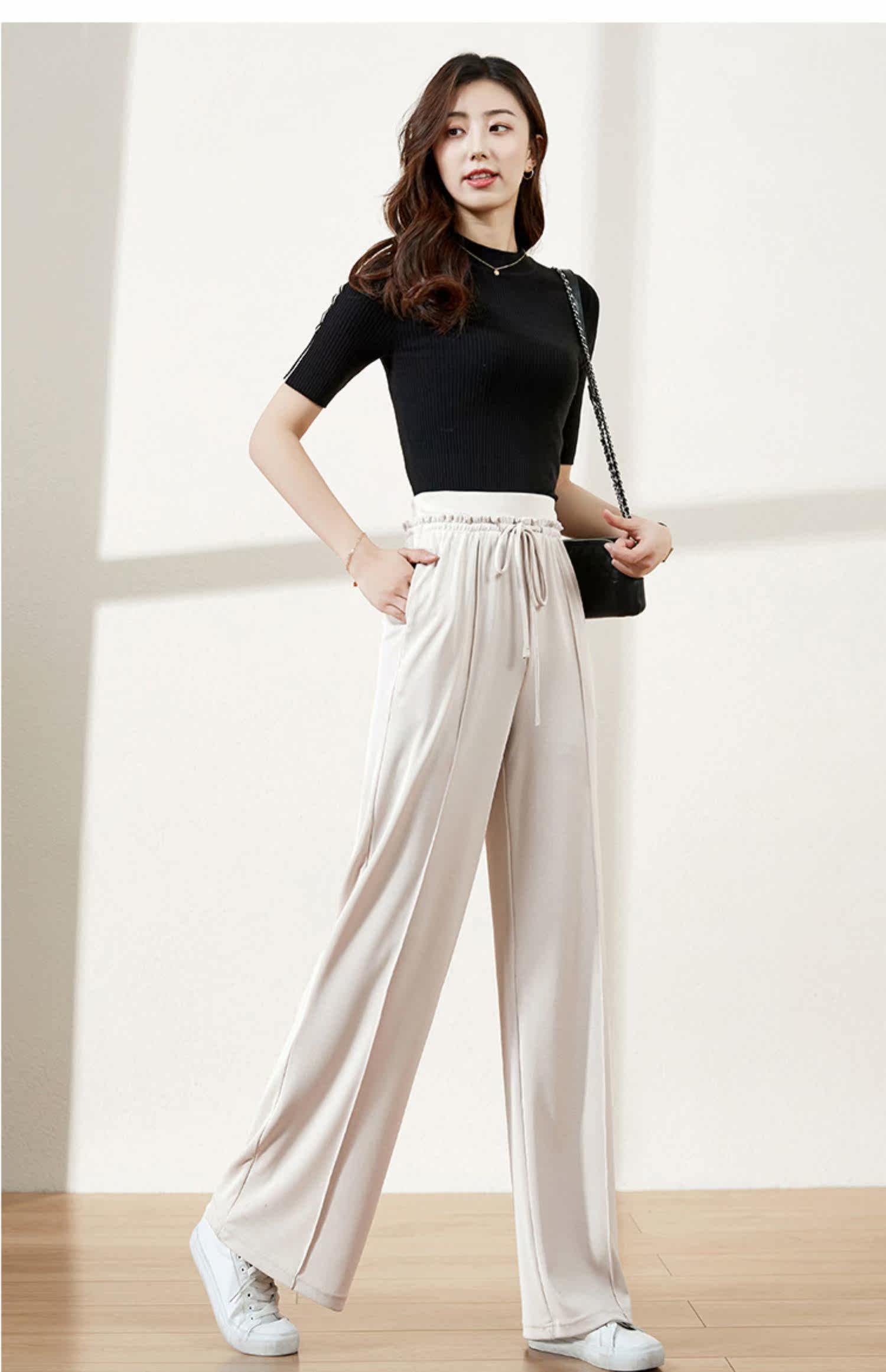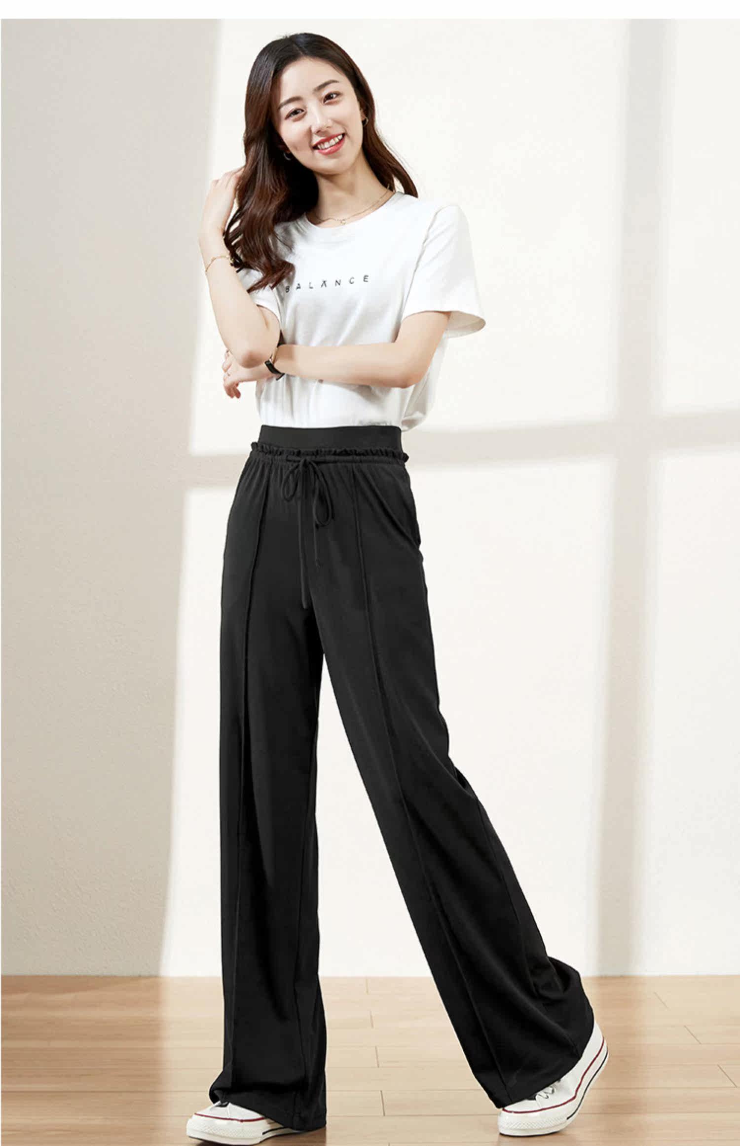 Весенние трикотажные штаны, 2020 года, высокая талия, свободный прямой крой