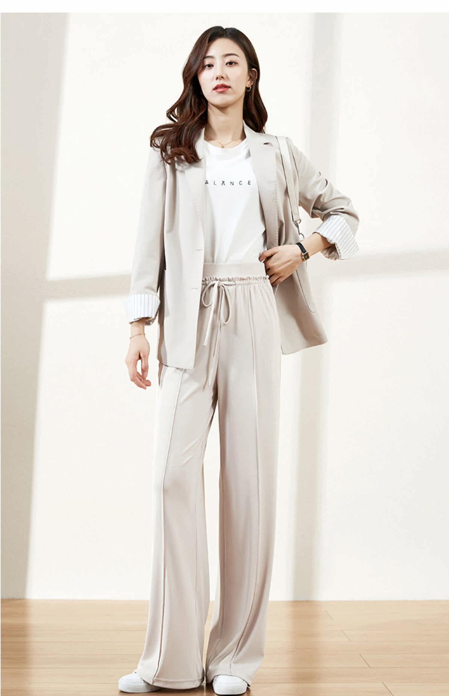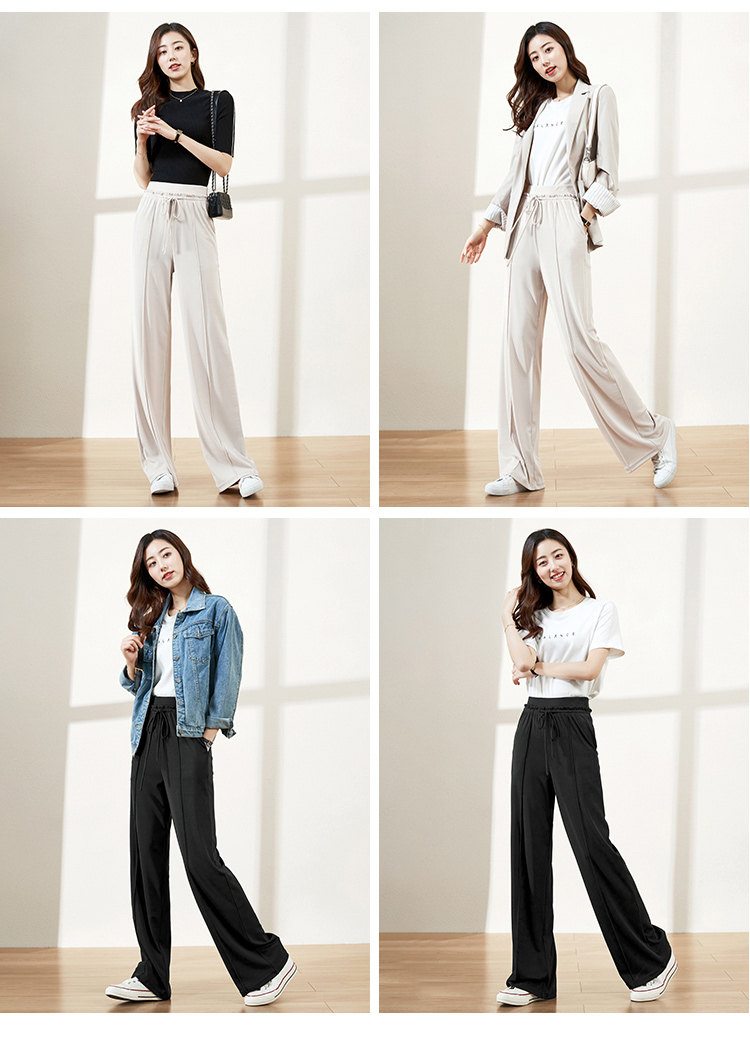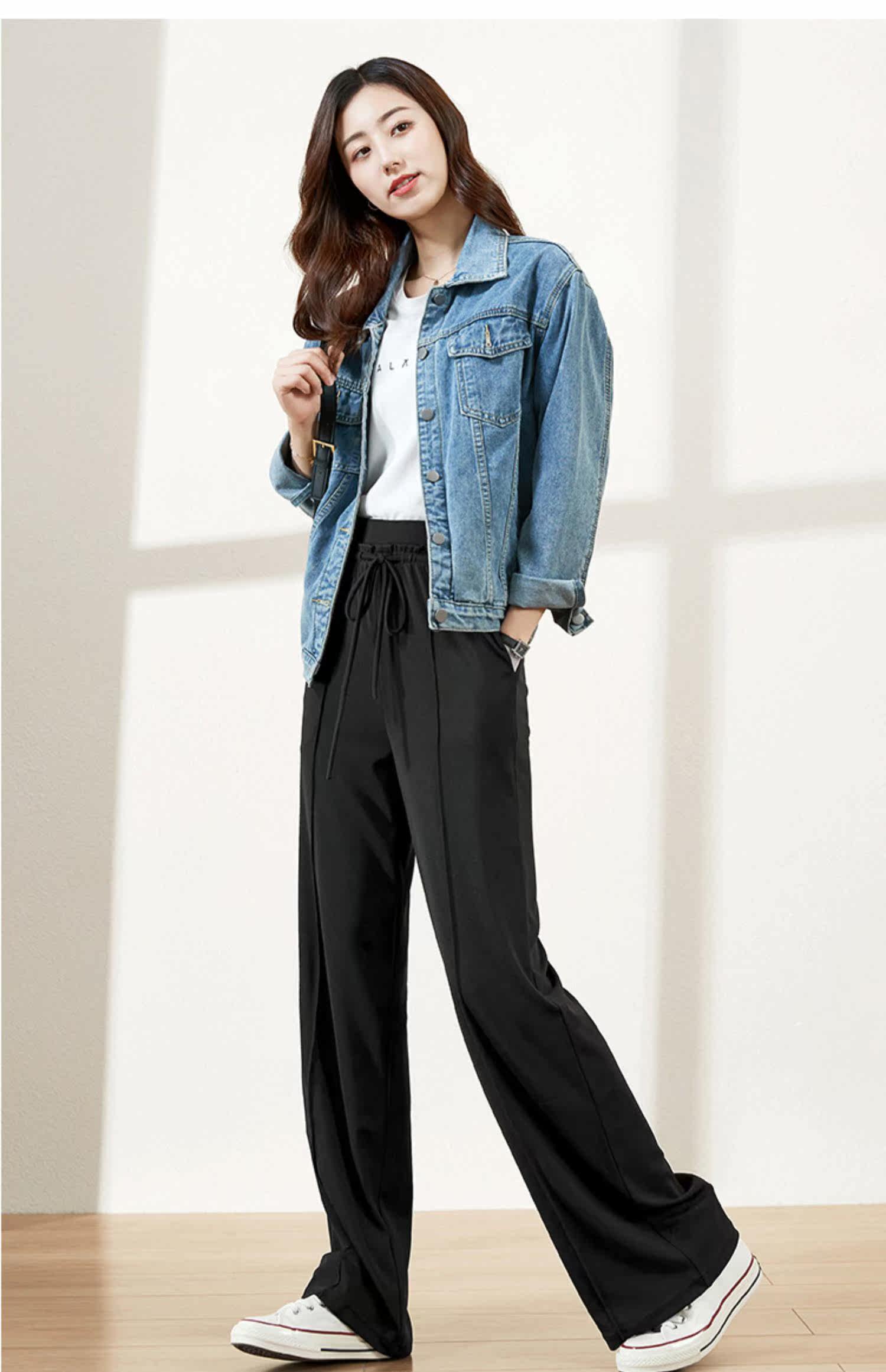 Весенние трикотажные штаны, 2020 года, высокая талия, свободный прямой крой