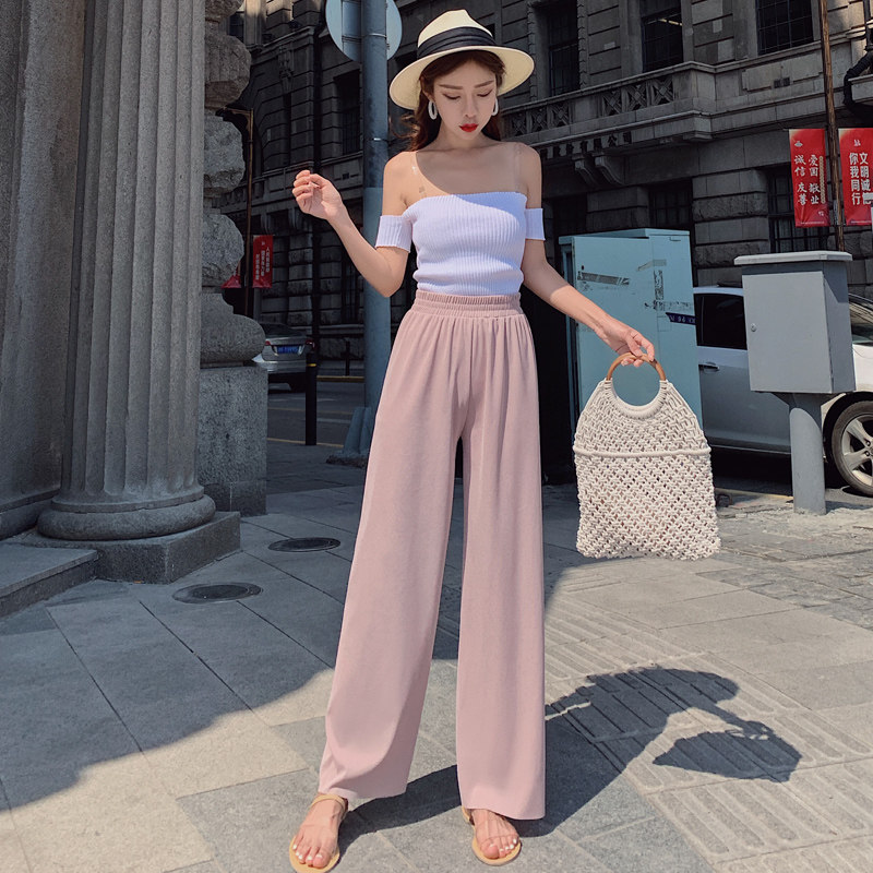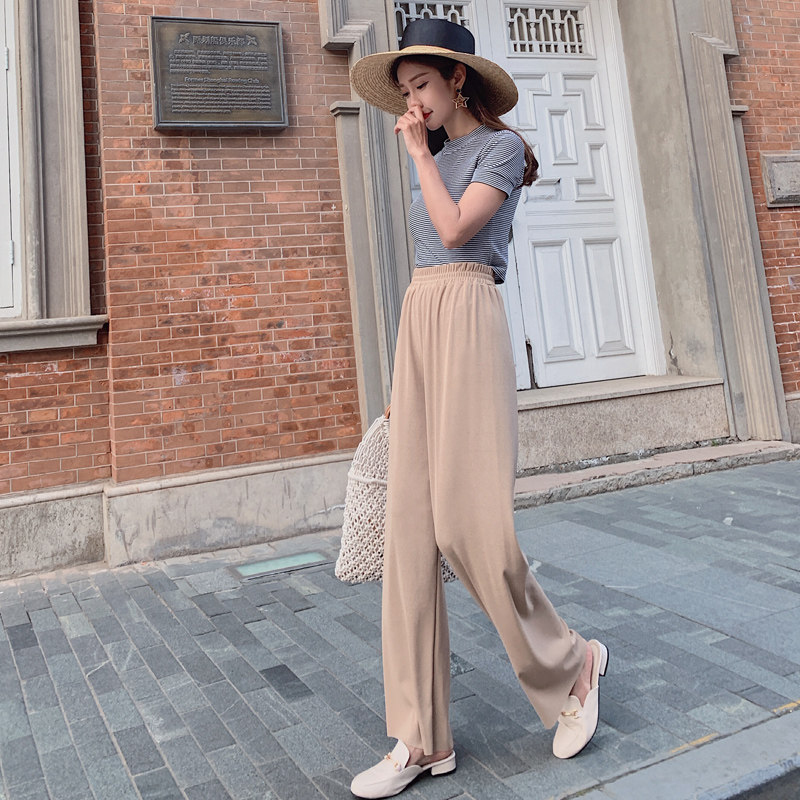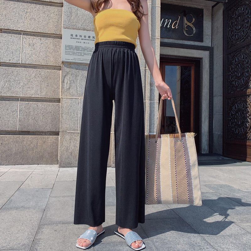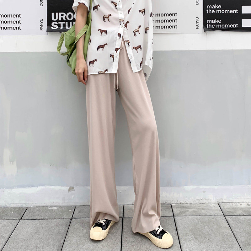 Шелковые штаны, 2020, высокая талия, свободный прямой крой