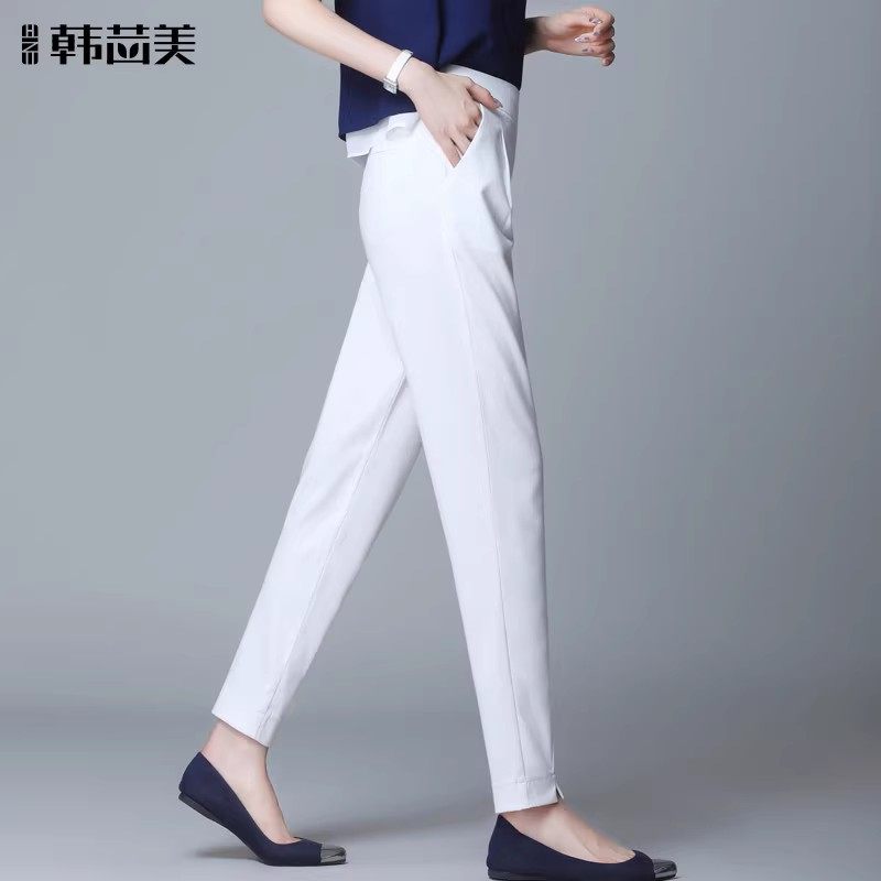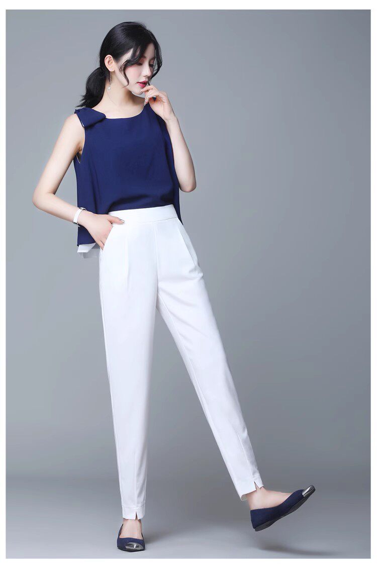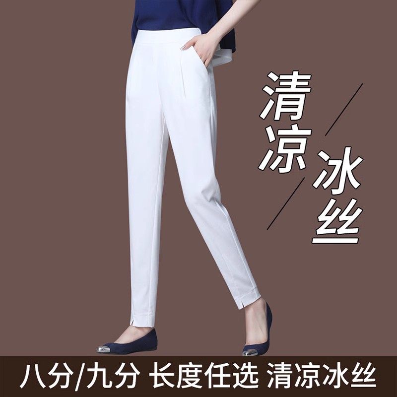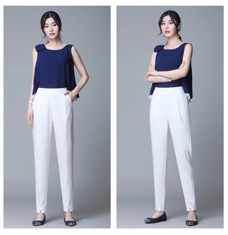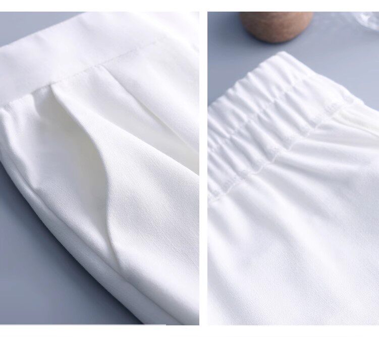 Белые летние тонкие шелковые штаны для отдыха, высокая талия, свободный прямой крой