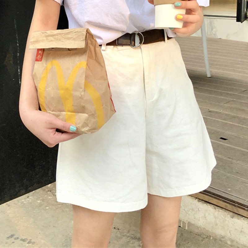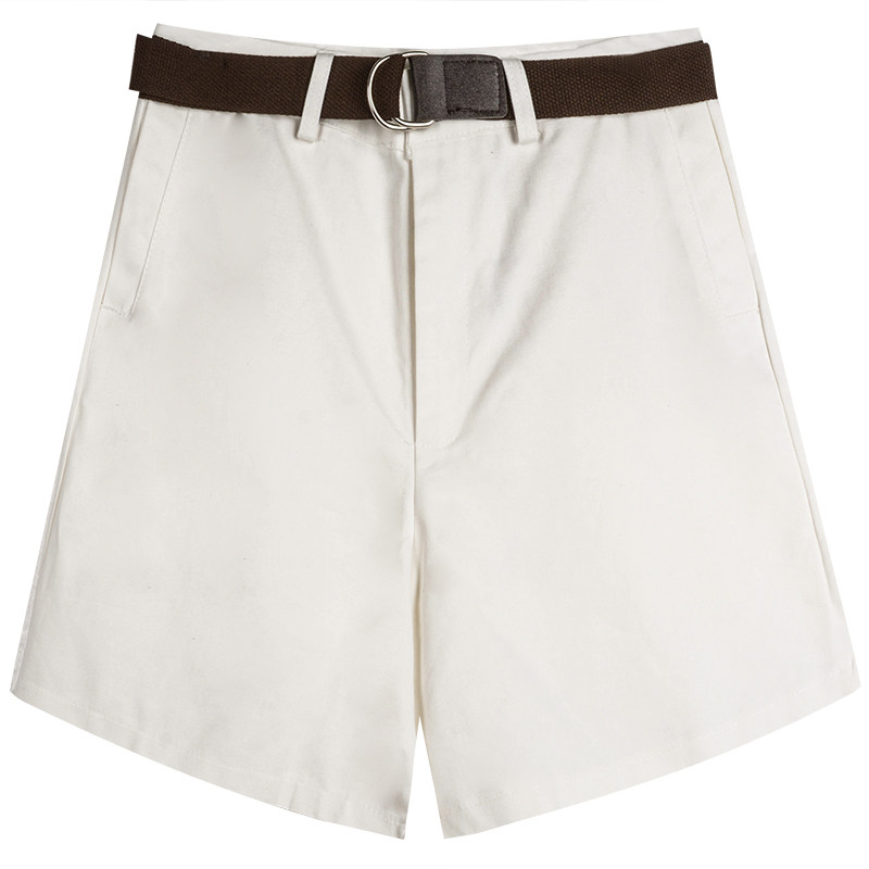 Шорты, штаны, белый пиджак классического кроя, А-силуэт, свободный прямой крой, высокая талия