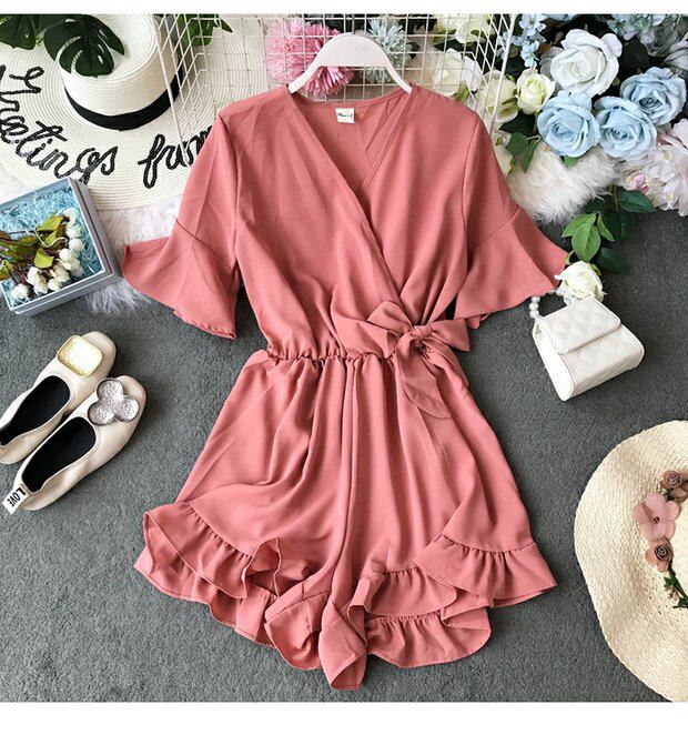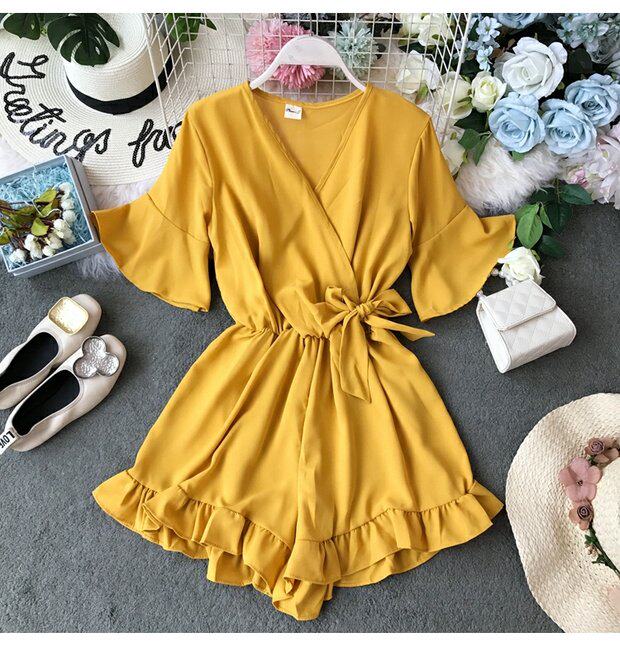 Мегафон с бантиком, комбинезон, V-образный вырез, высокая талия, в западном стиле