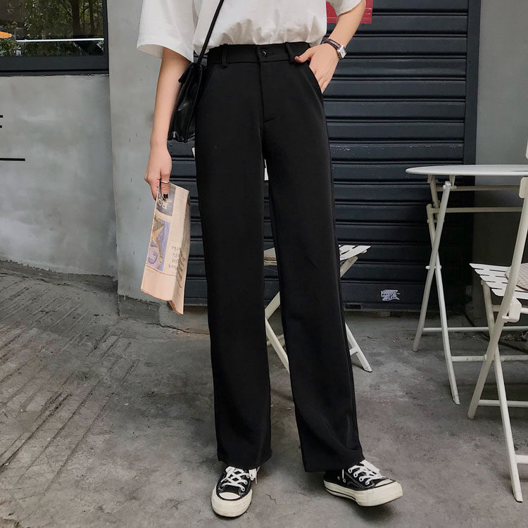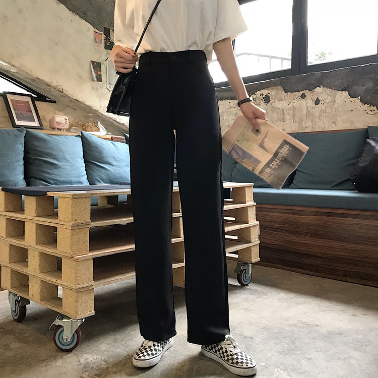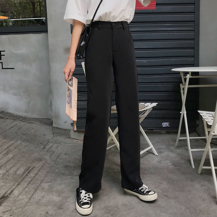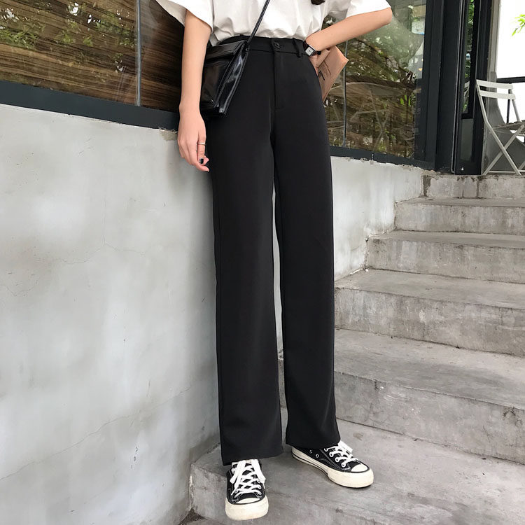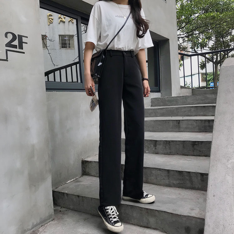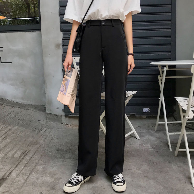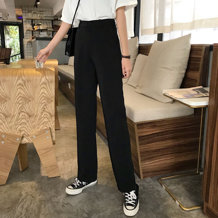 Черные весенние штаны, летний тонкий костюм, высокая талия, свободный прямой крой