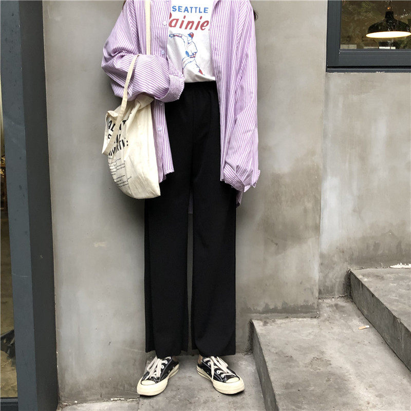 Трендовые осенние брендовые штаны для отдыха, в корейском стиле, высокая талия, свободный прямой крой
