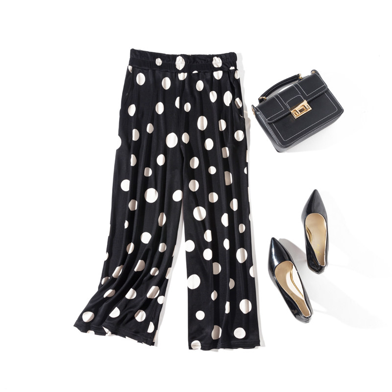 Летние шелковые штаны для отдыха, свободный прямой крой, по фигуре, эластичная талия