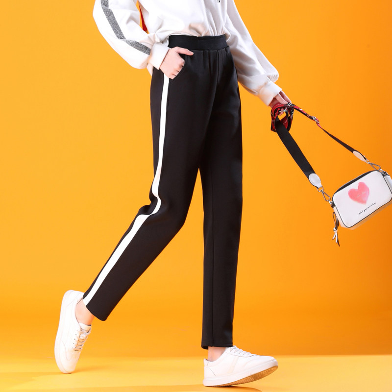 Спортивные приталенные штаны для школьников и студентов, коллекция 2023, высокая талия, свободный крой, в корейском стиле