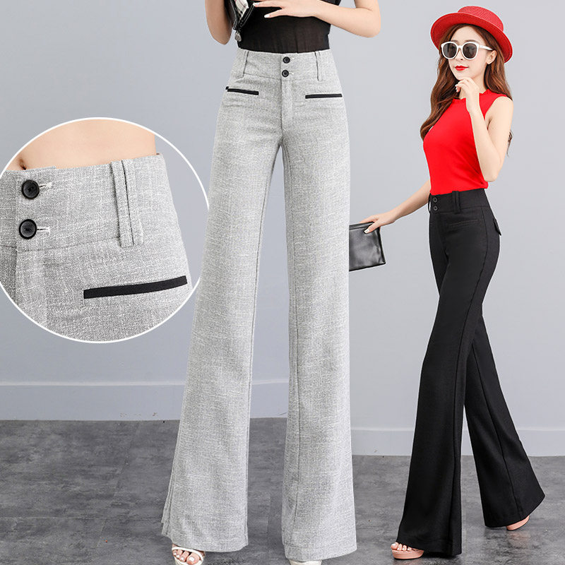 Осенние штаны, 2023, из хлопка и льна, свободный прямой крой, большой размер