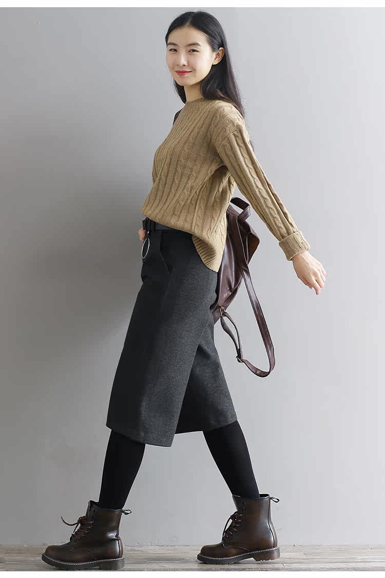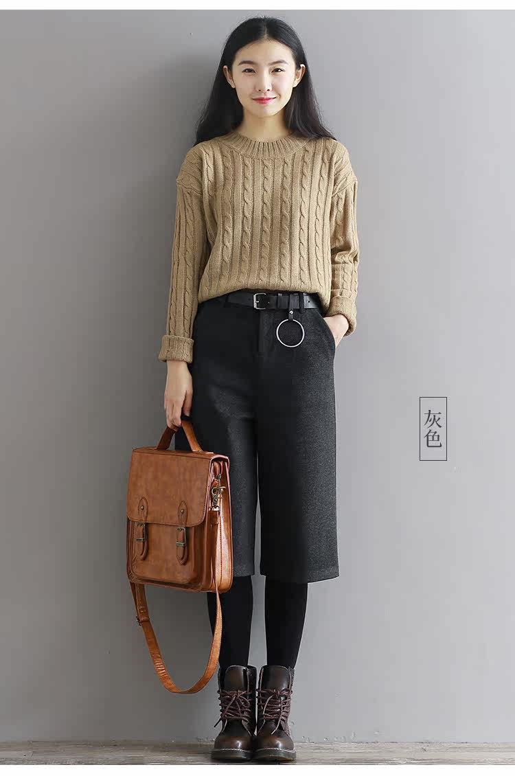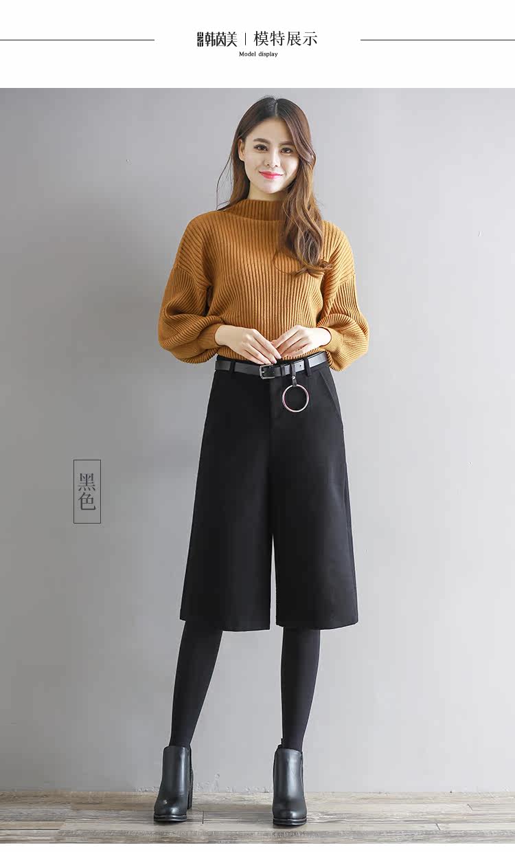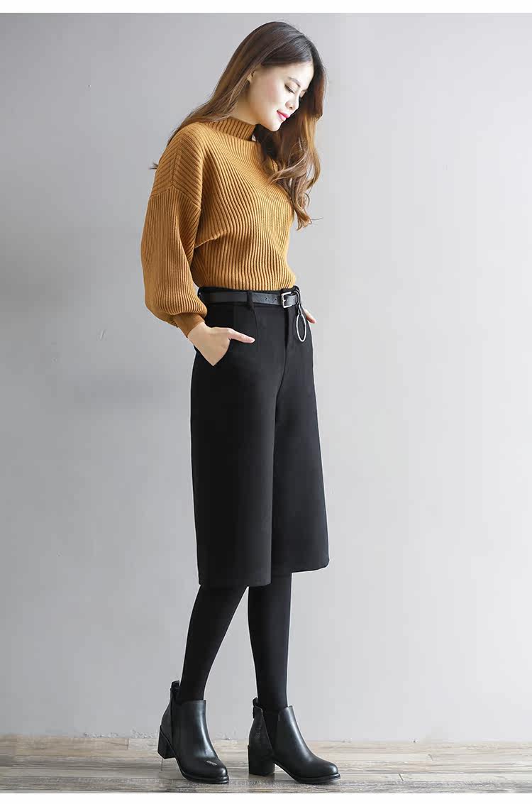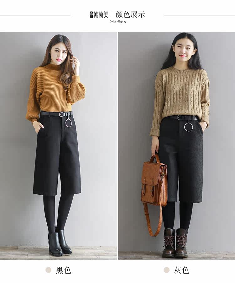 Штаны, шерстяные шорты, в корейском стиле, высокая талия, свободный крой, оверсайз
