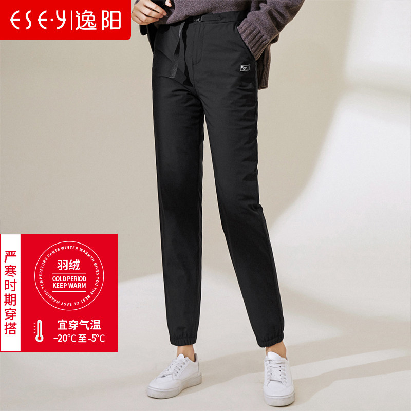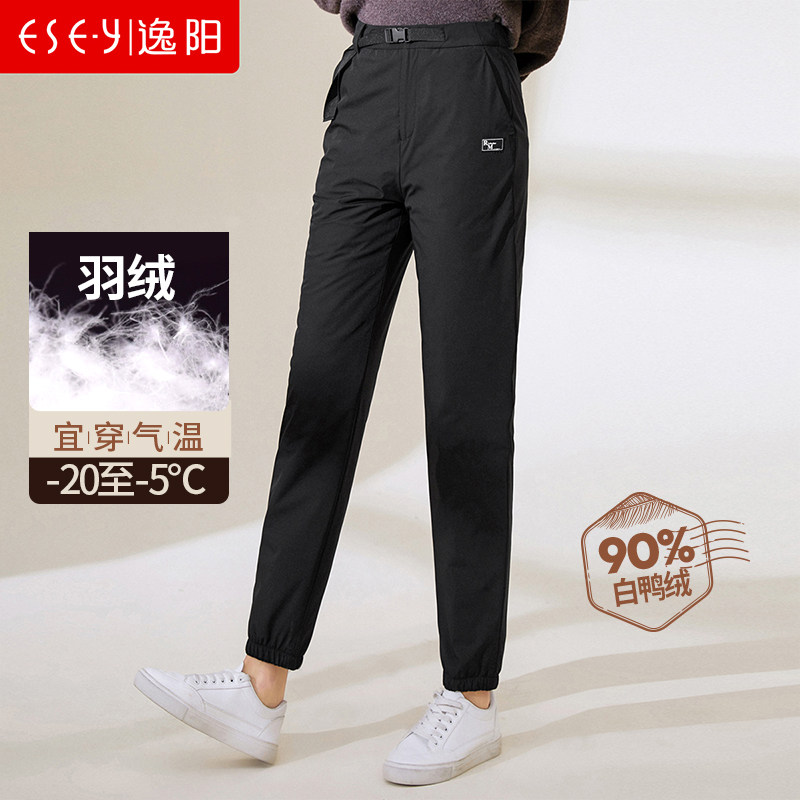 Демисезонные штаны с пухом, повседневные брюки, 2020, в корейском стиле, свободный крой, высокая талия, увеличенная толщина