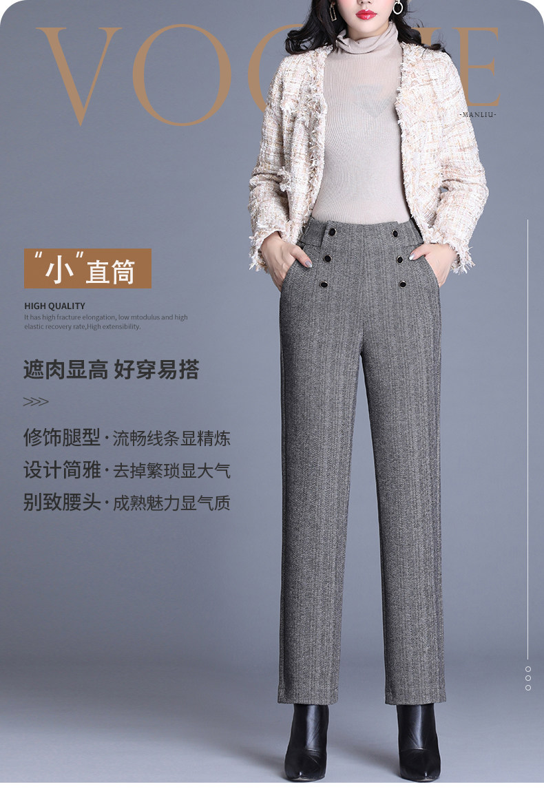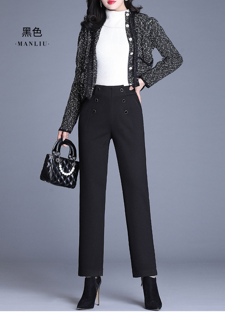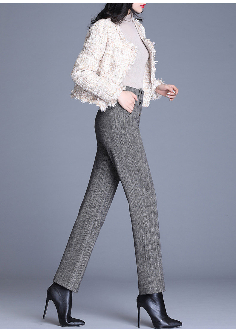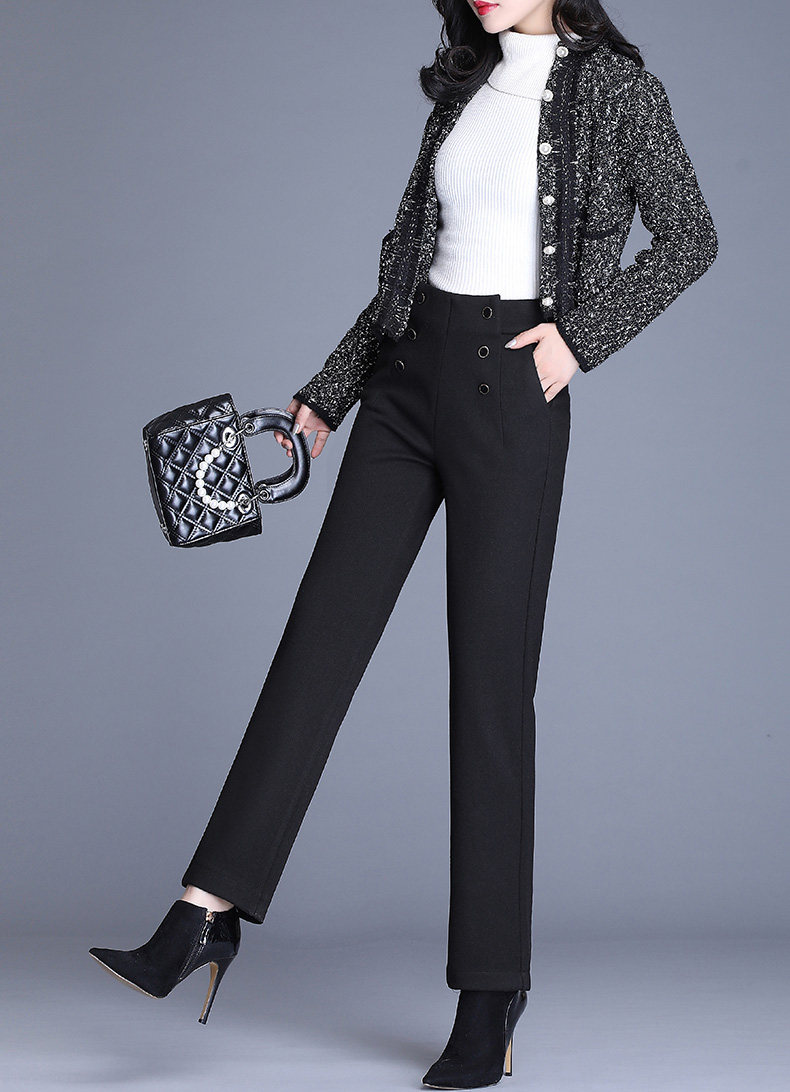 Шерстяные демисезонные штаны, свободный прямой крой, коллекция 2021, высокая талия, увеличенная толщина