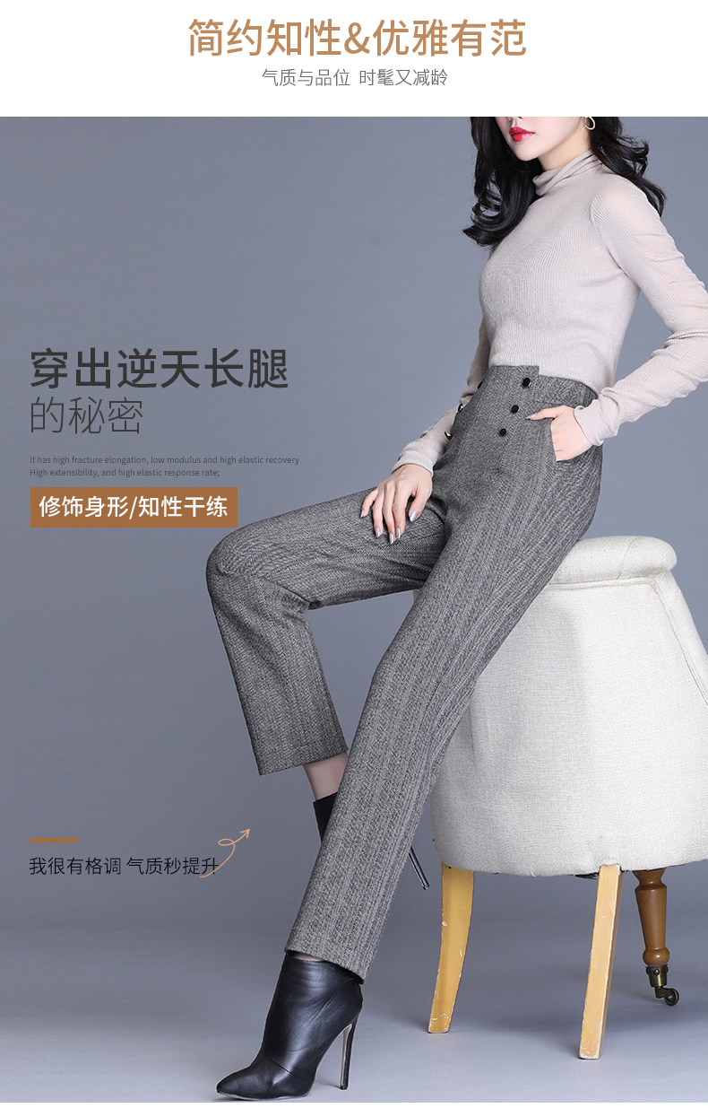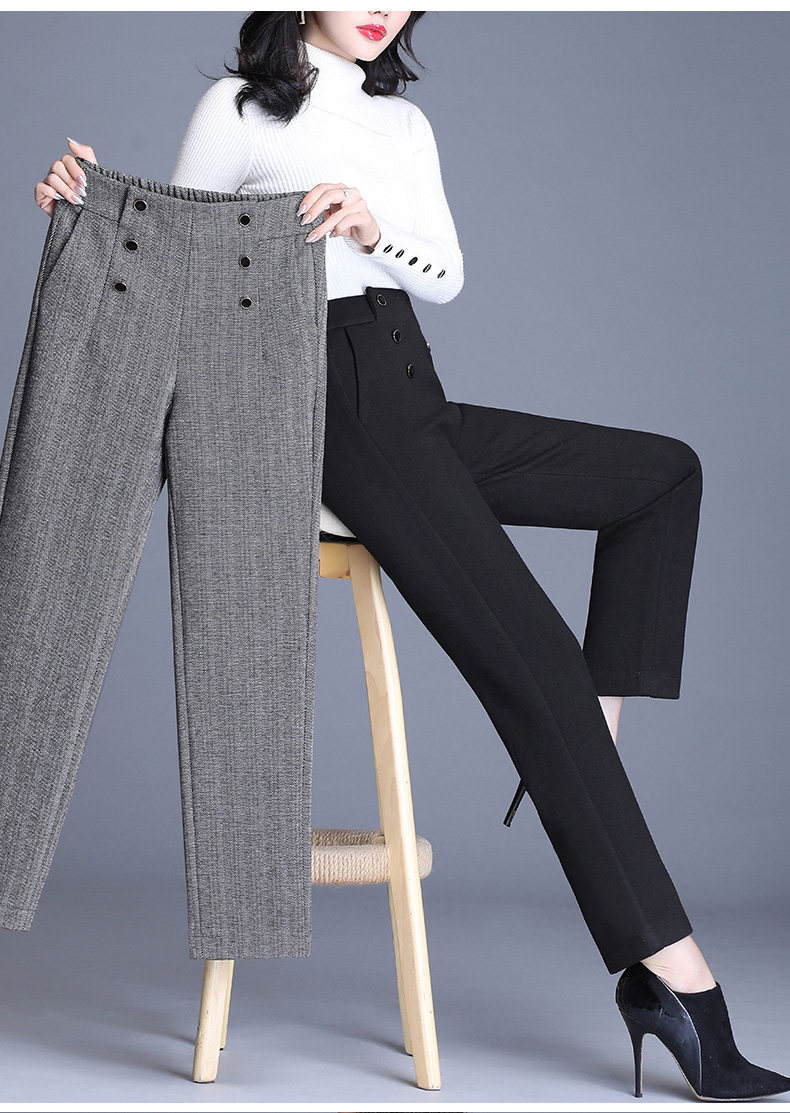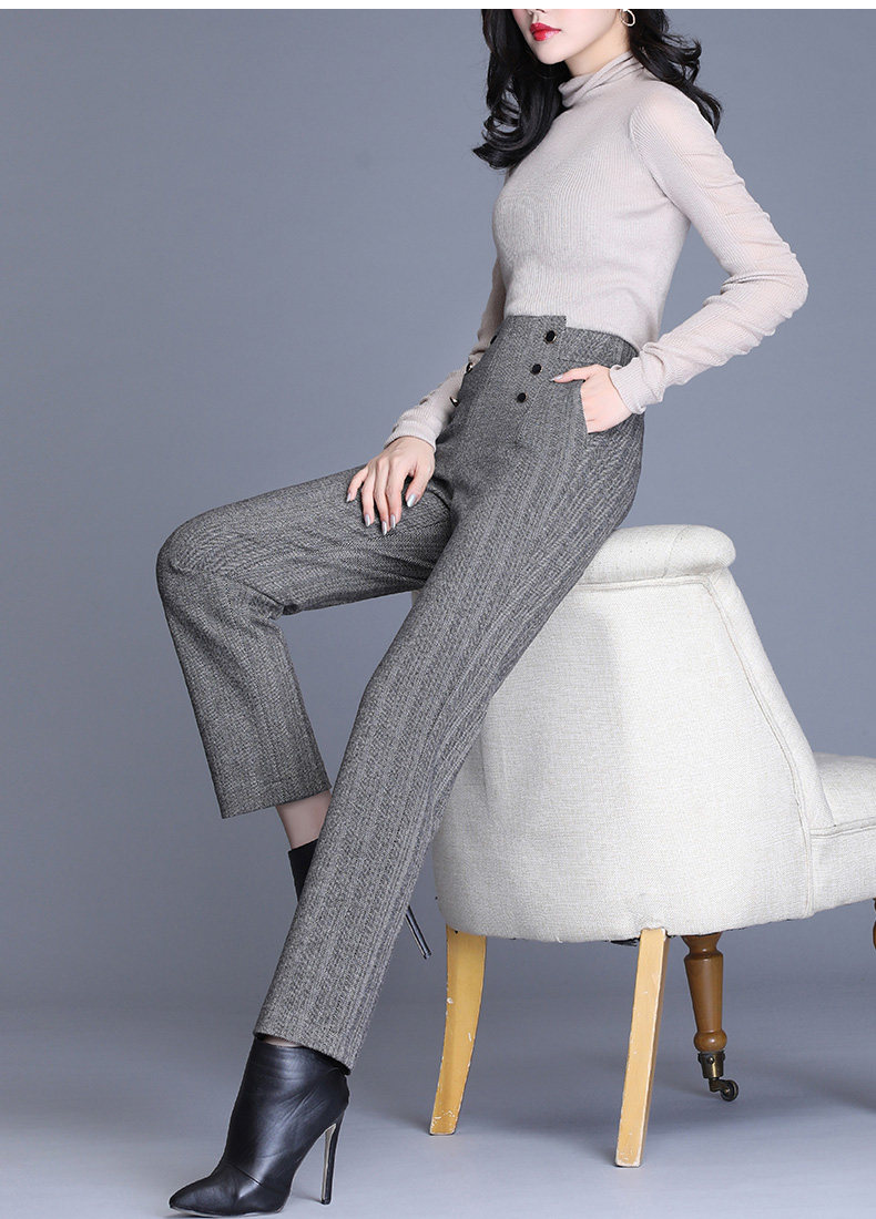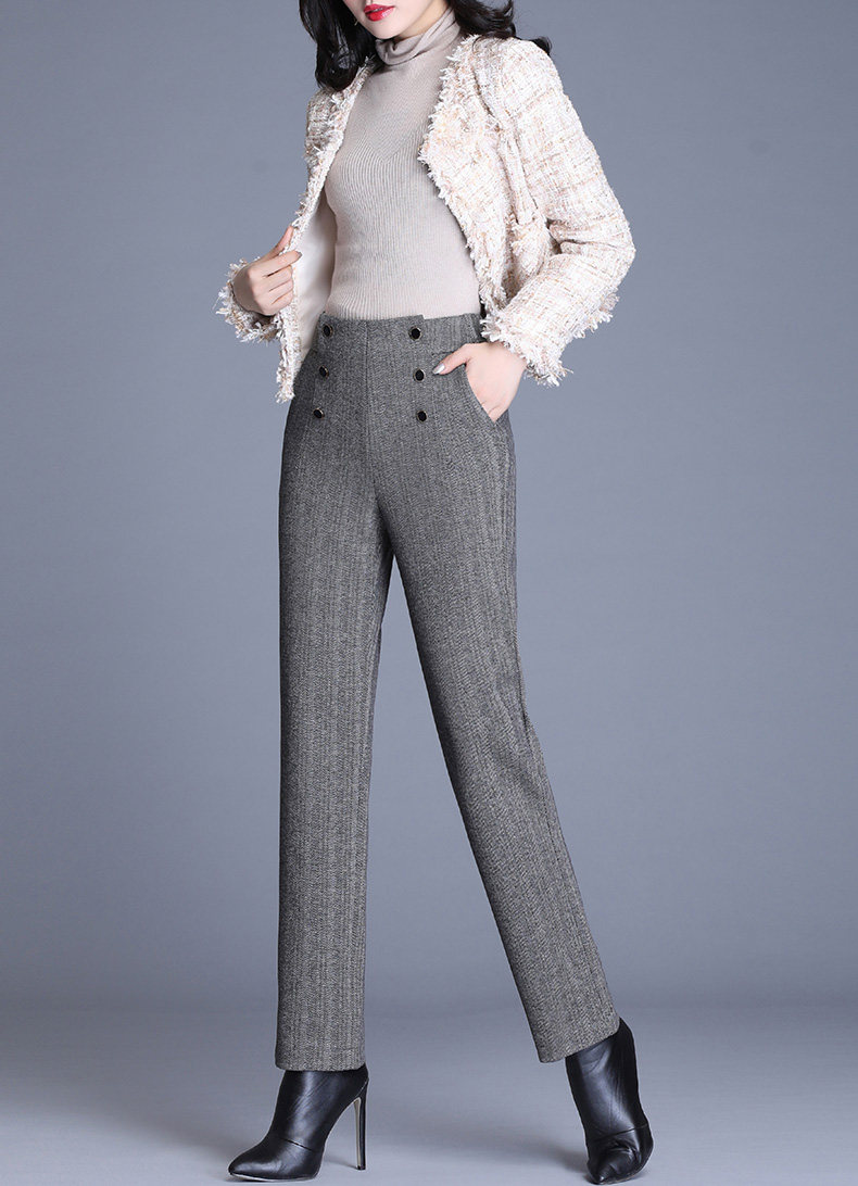 Шерстяные демисезонные штаны, свободный прямой крой, коллекция 2021, высокая талия, увеличенная толщина