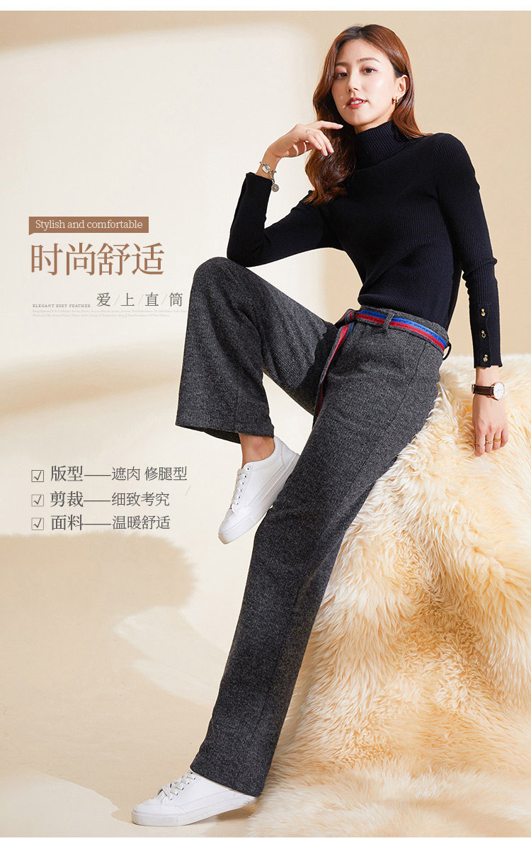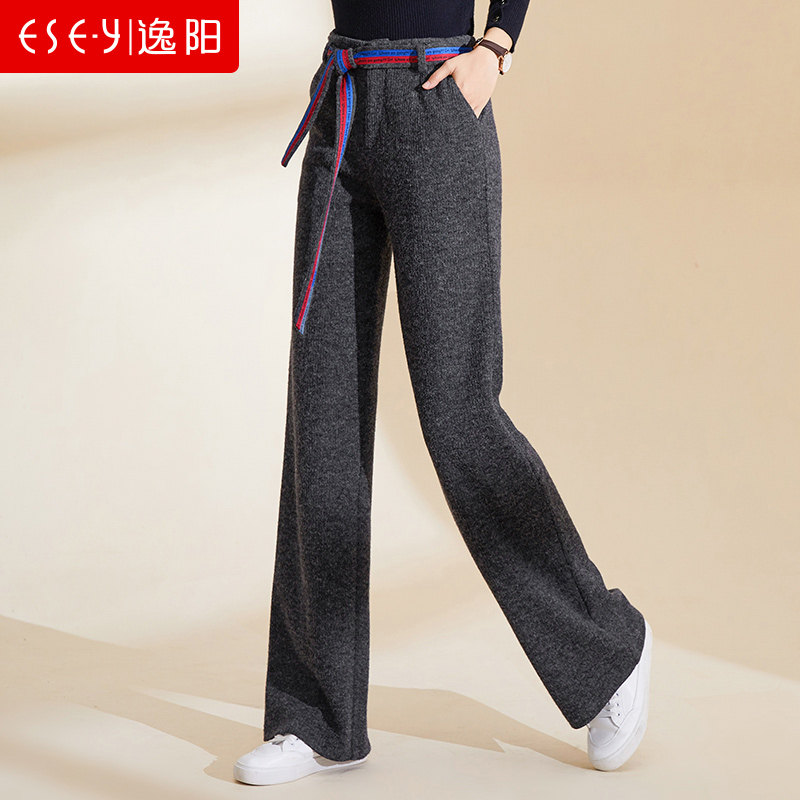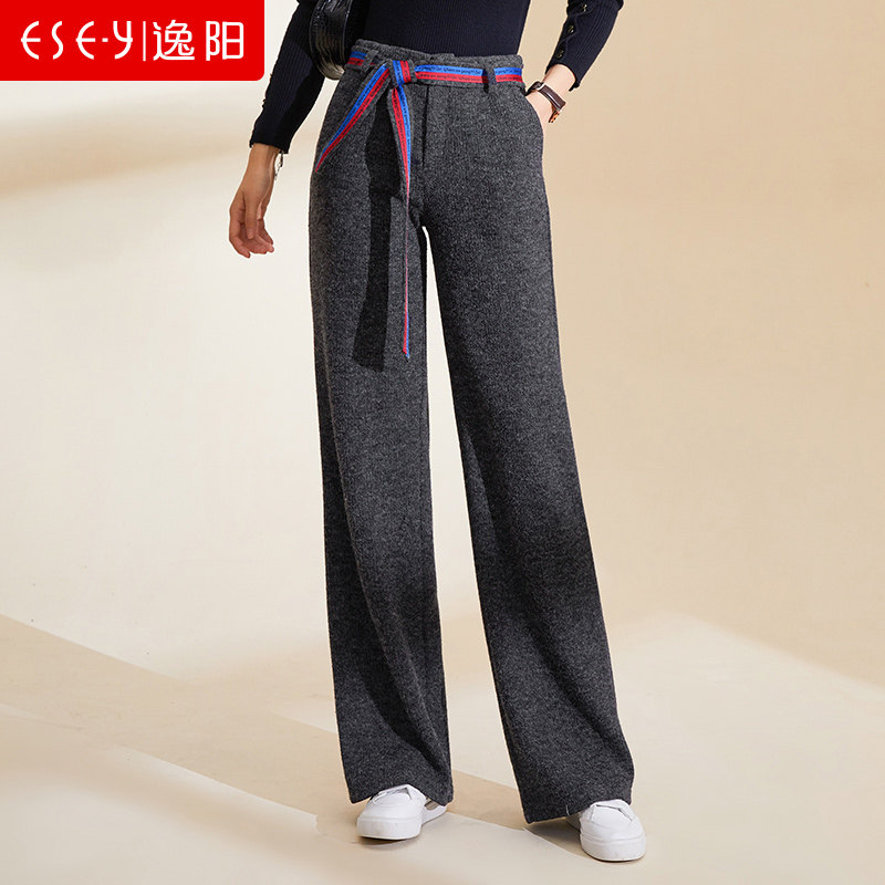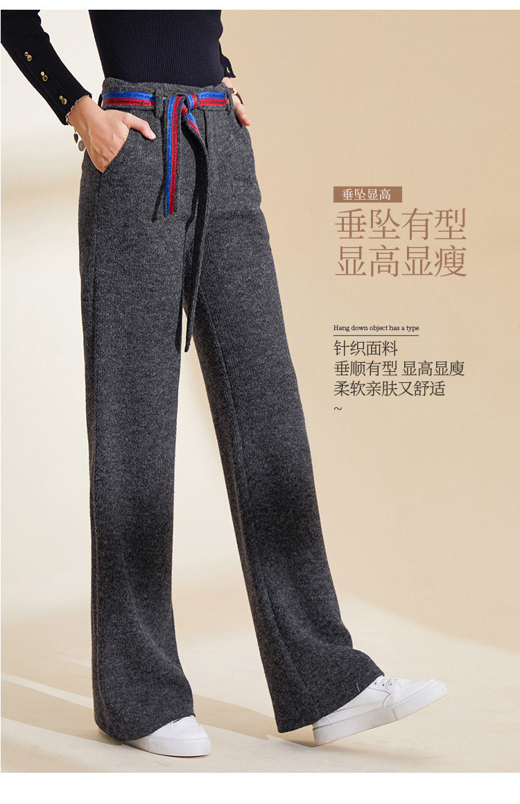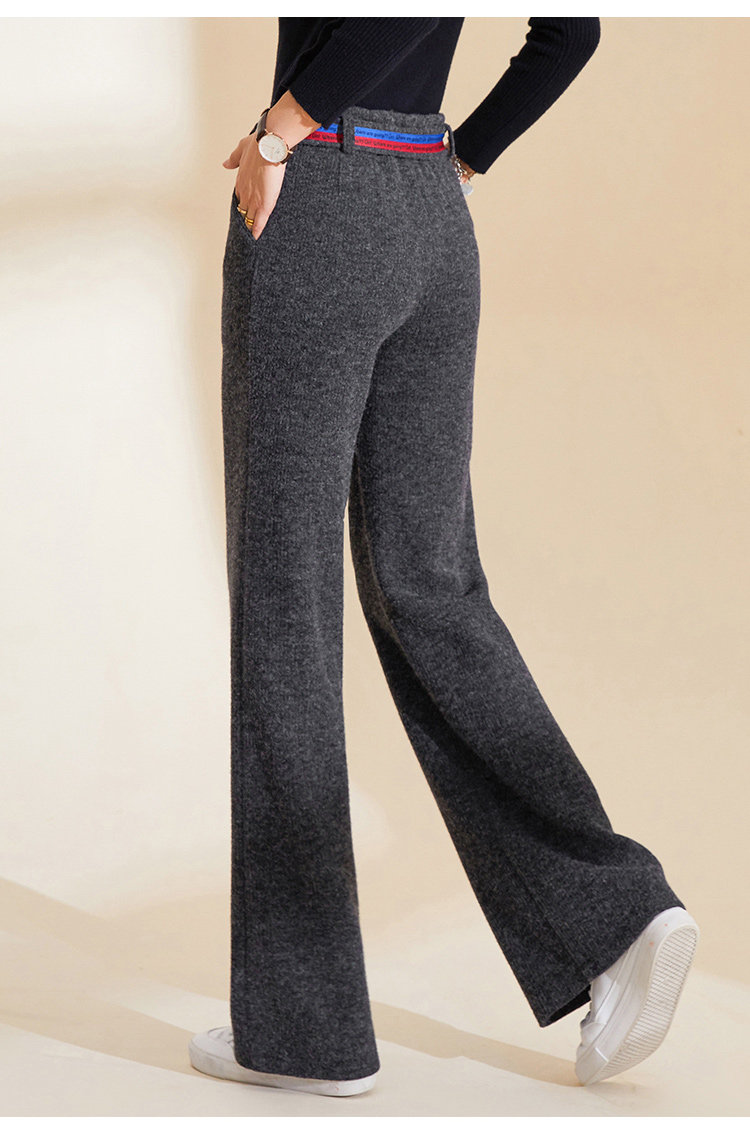 Демисезонные трикотажные штаны, 2019, высокая талия, свободный прямой крой, увеличенная толщина