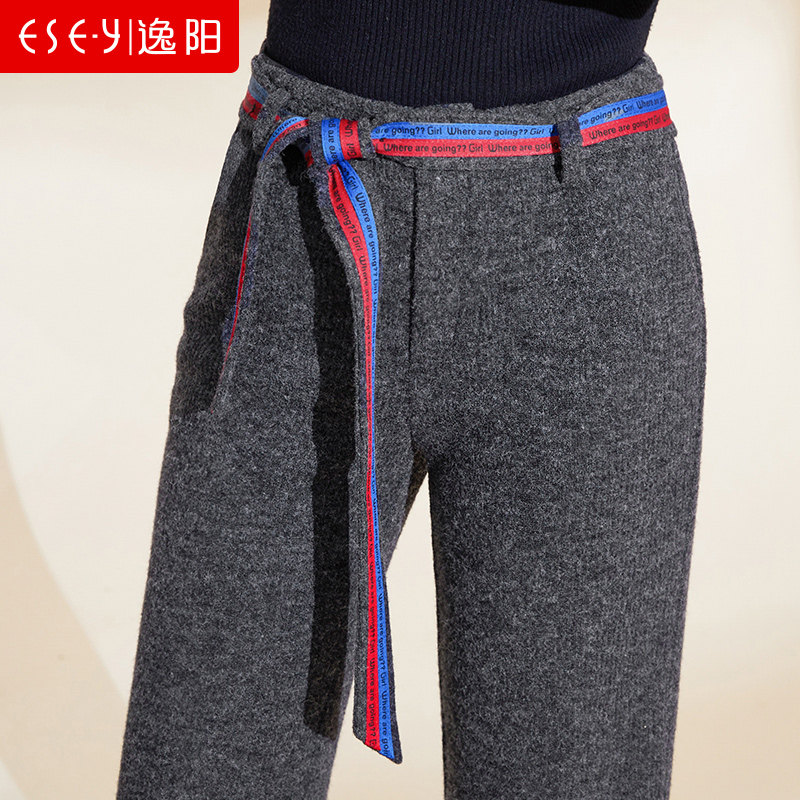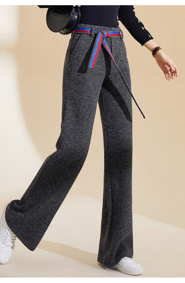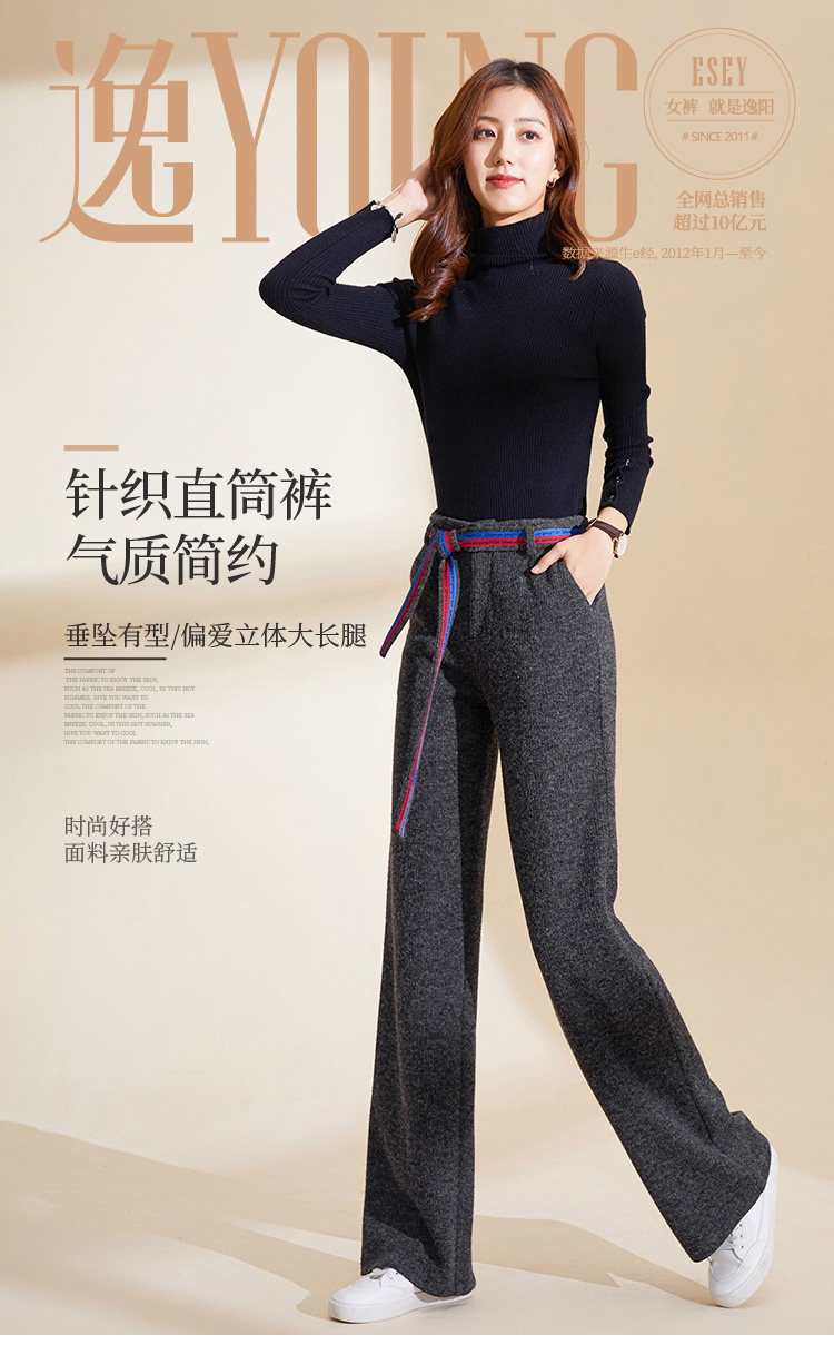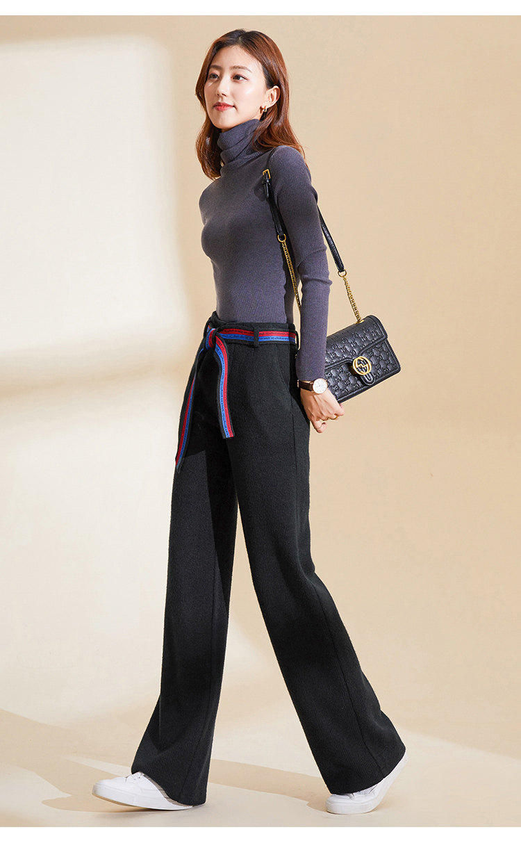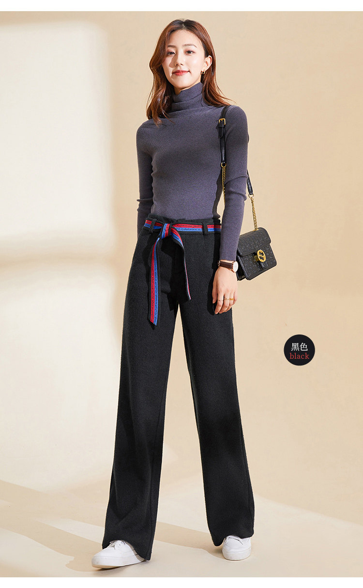 Демисезонные трикотажные штаны, 2019, высокая талия, свободный прямой крой, увеличенная толщина